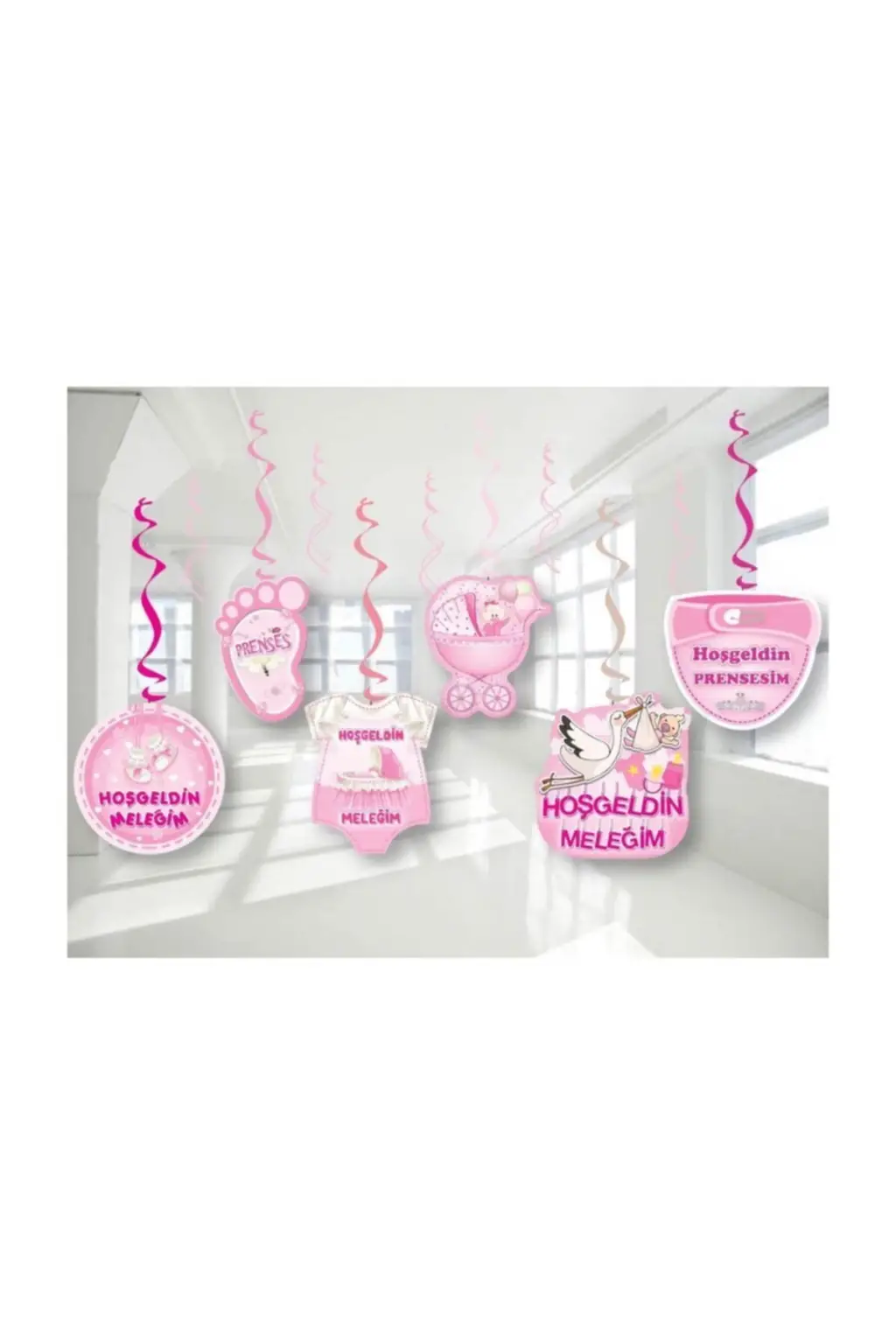 Hoşgeldin Bebeğim Pembe Renk 6 lı Tavan Sarkıt Süs Yeni Doğum Kız Bebek Süslemesi