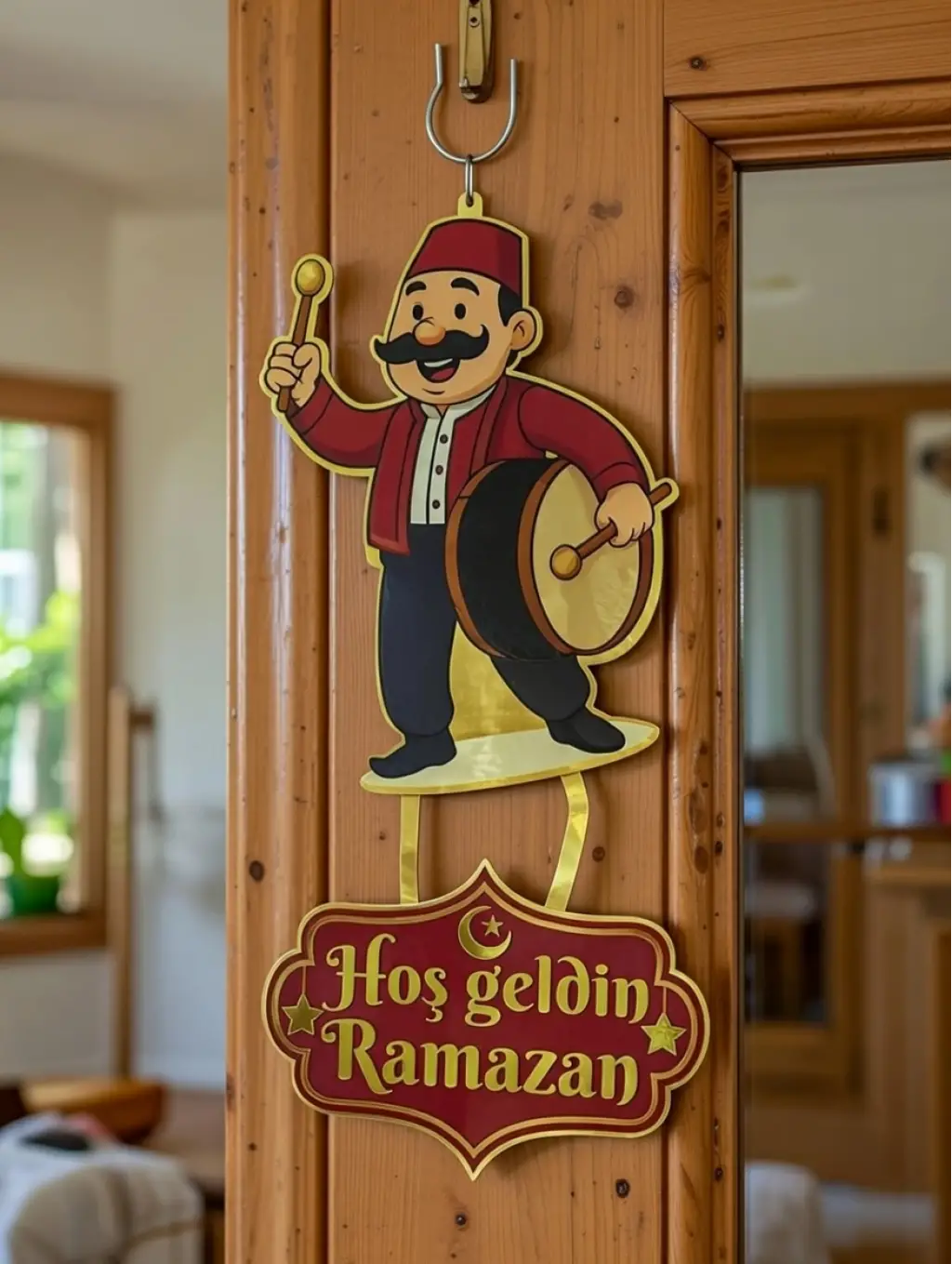 Hoşgeldin Ramazan Davulcu Figür Kapı Süsü 50*25 Cm Asmalı Ramazan Kapı Süsü