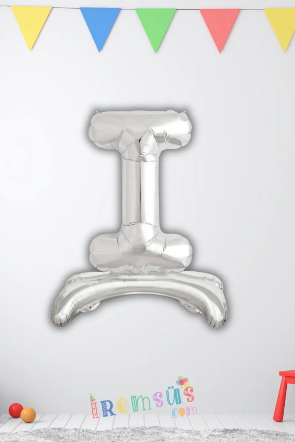 I-İ Harfi Ayaklı Folyo Balon Gümüş Renk 32"