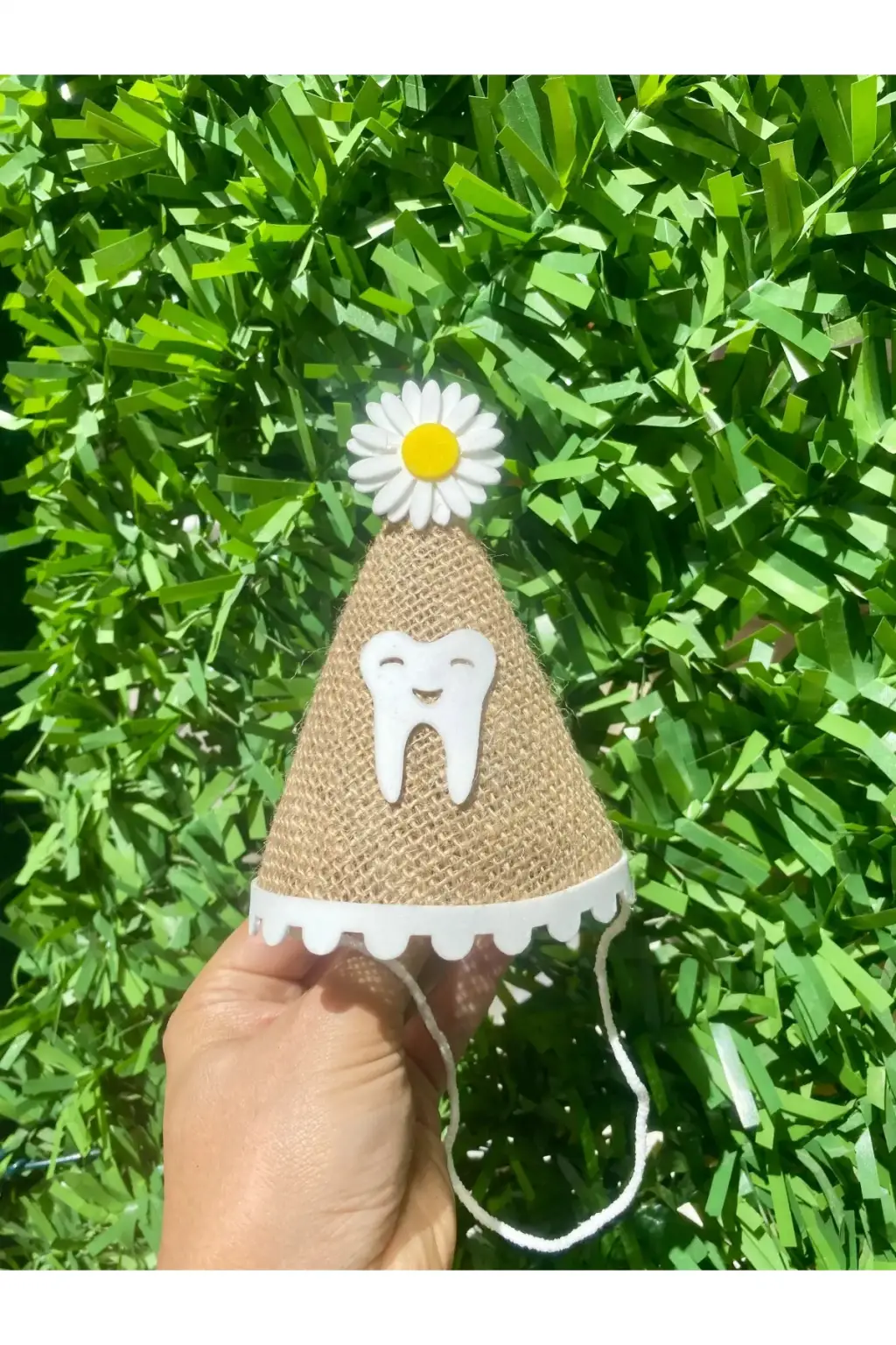 İlk Dişim Partisi Diş Baskılı Hasır Papatyalı Kukuleta Hasır Konsept Diş Buğdayı Kukuleta
