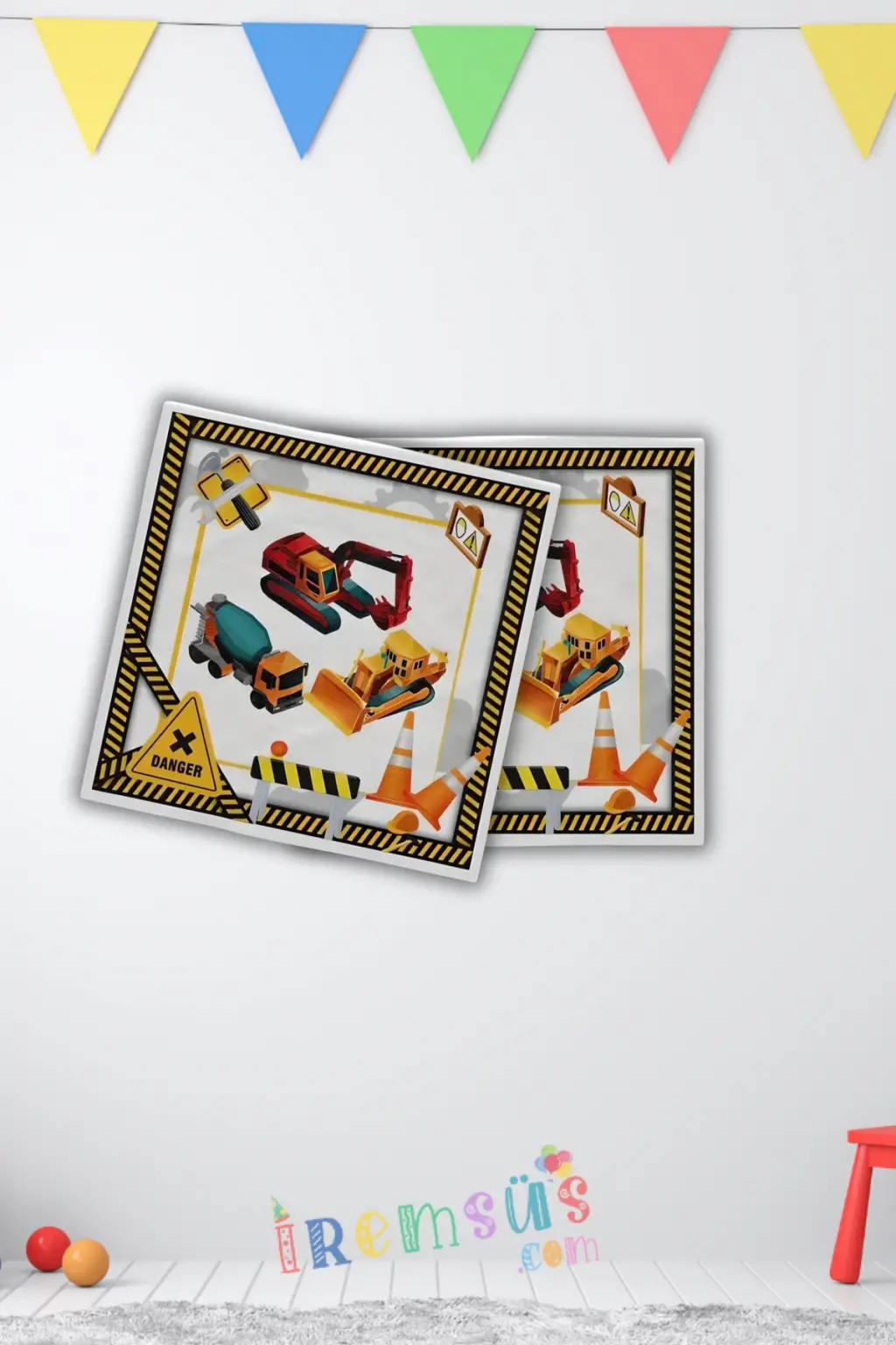 İnşaat Konsept Doğum Günü Parti Peçetesi 16 lı İnşaat Tema Masa Süslemesi