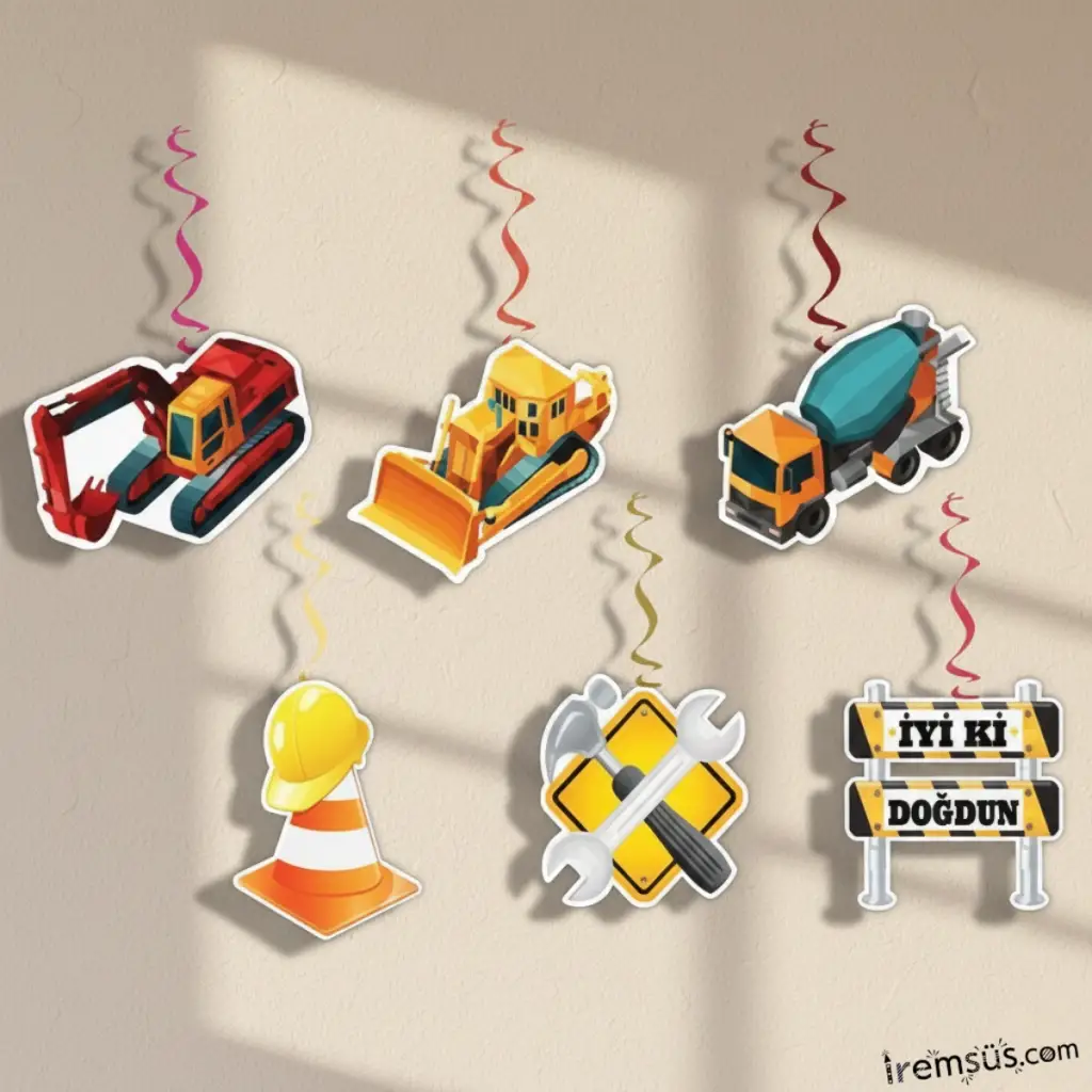 İnşaat Konsept Doğum Günü Partisi İyiki Doğdun Banner + 6lı Tavan Süs Süsleme Paketi Ekonomik Paket