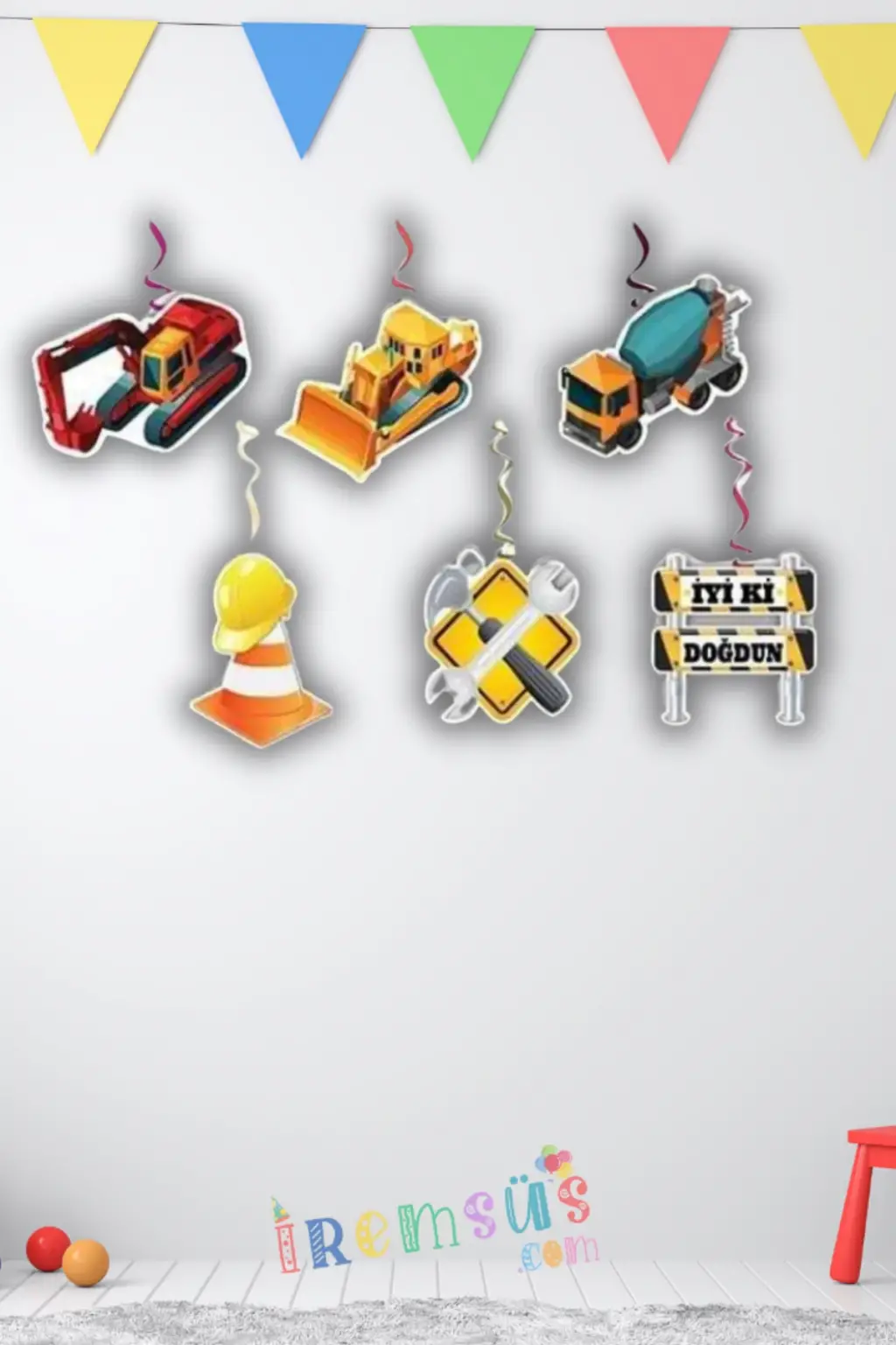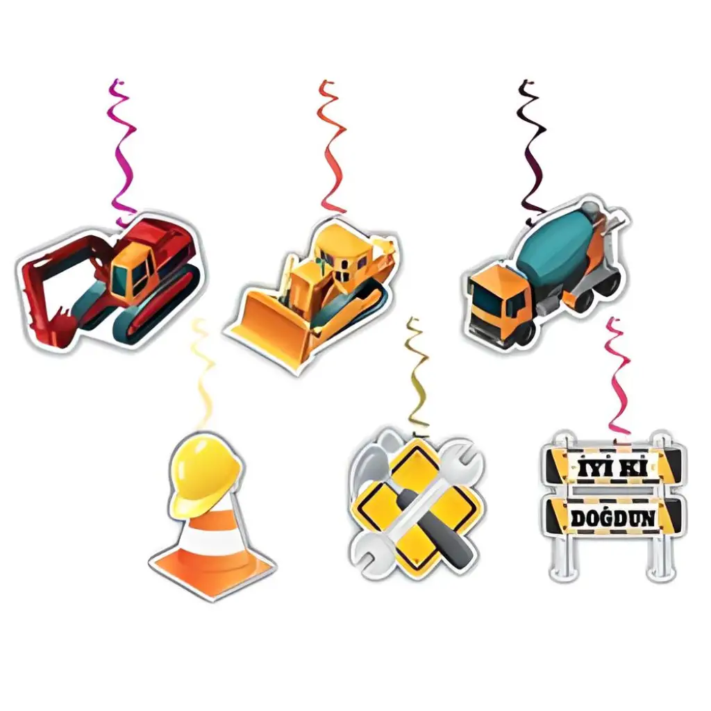 İnşaat Konsept Doğum Günü Tavandan Sarkıt Süslemesi 6 lı İnşaat Süslemesi