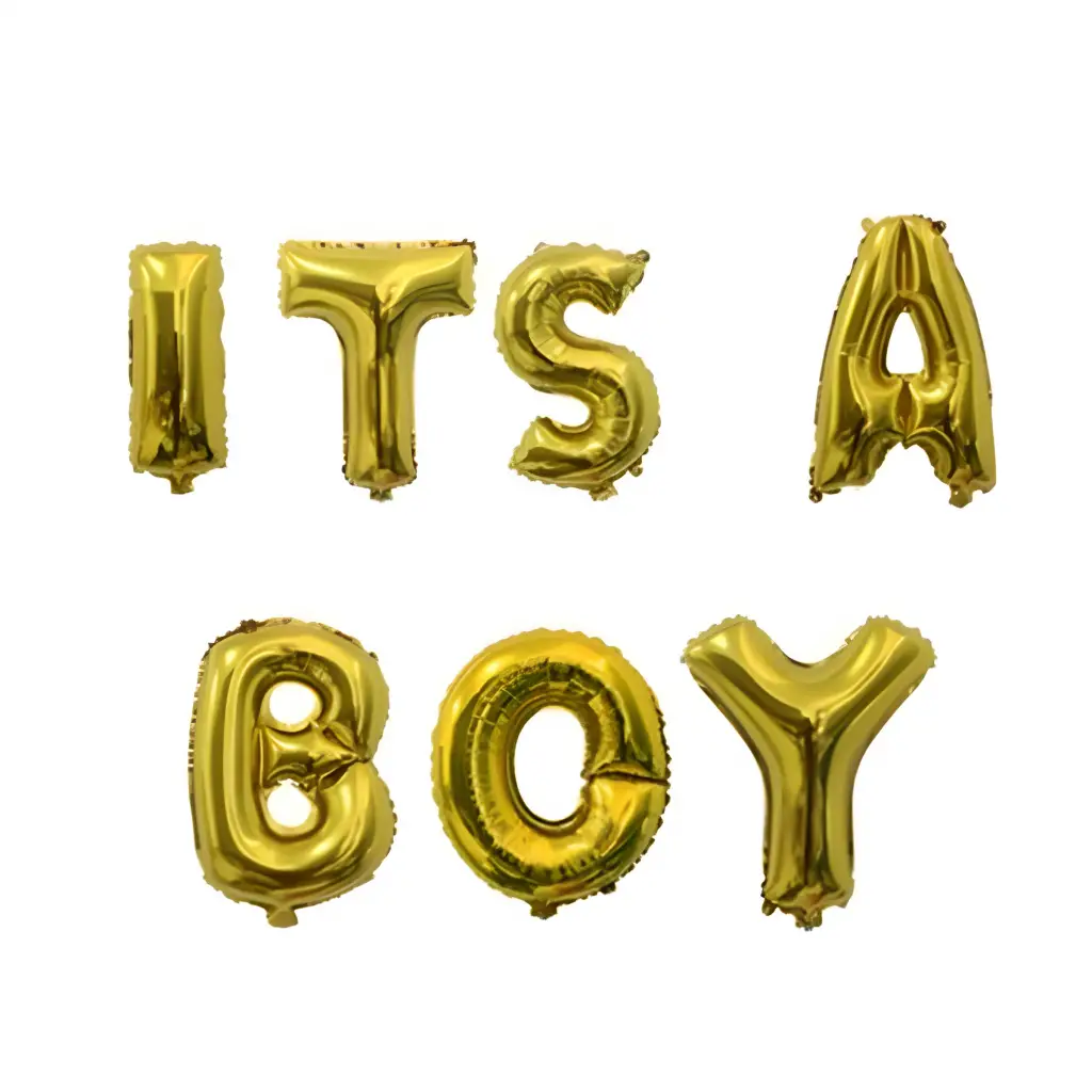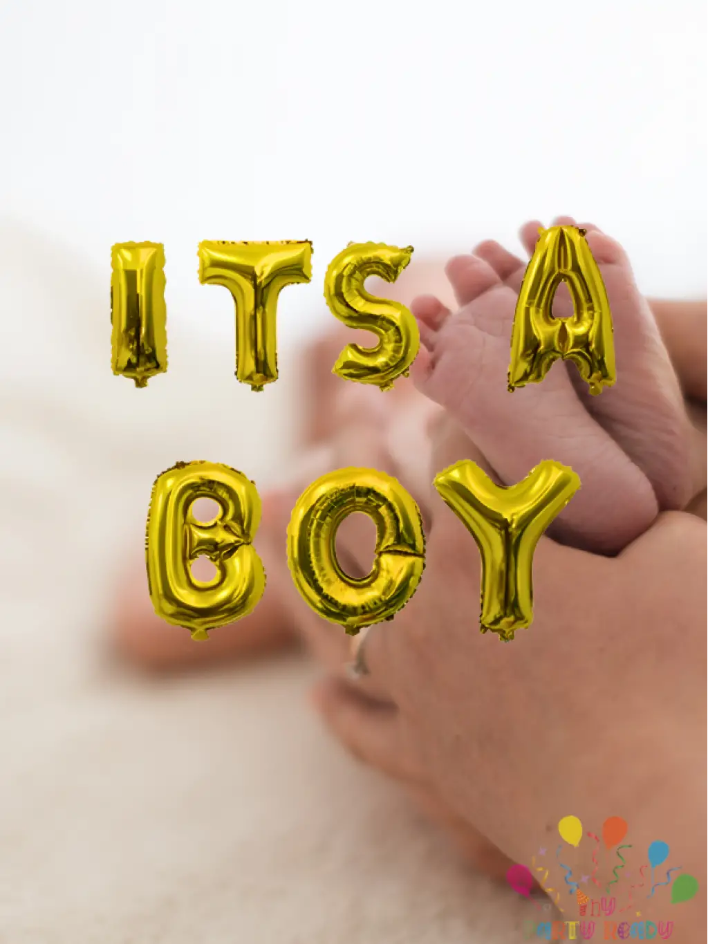 ITS A Boy Folyo Harf Balon Seti 36 cm Gold Renk Erkek Bebek Cinsiyet Partisi ve Yeni Doğum Süsü