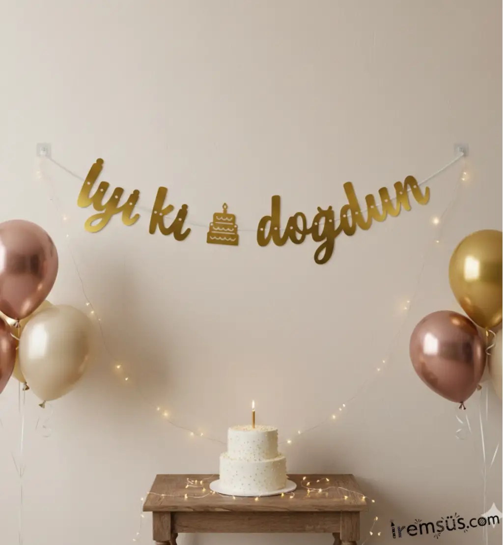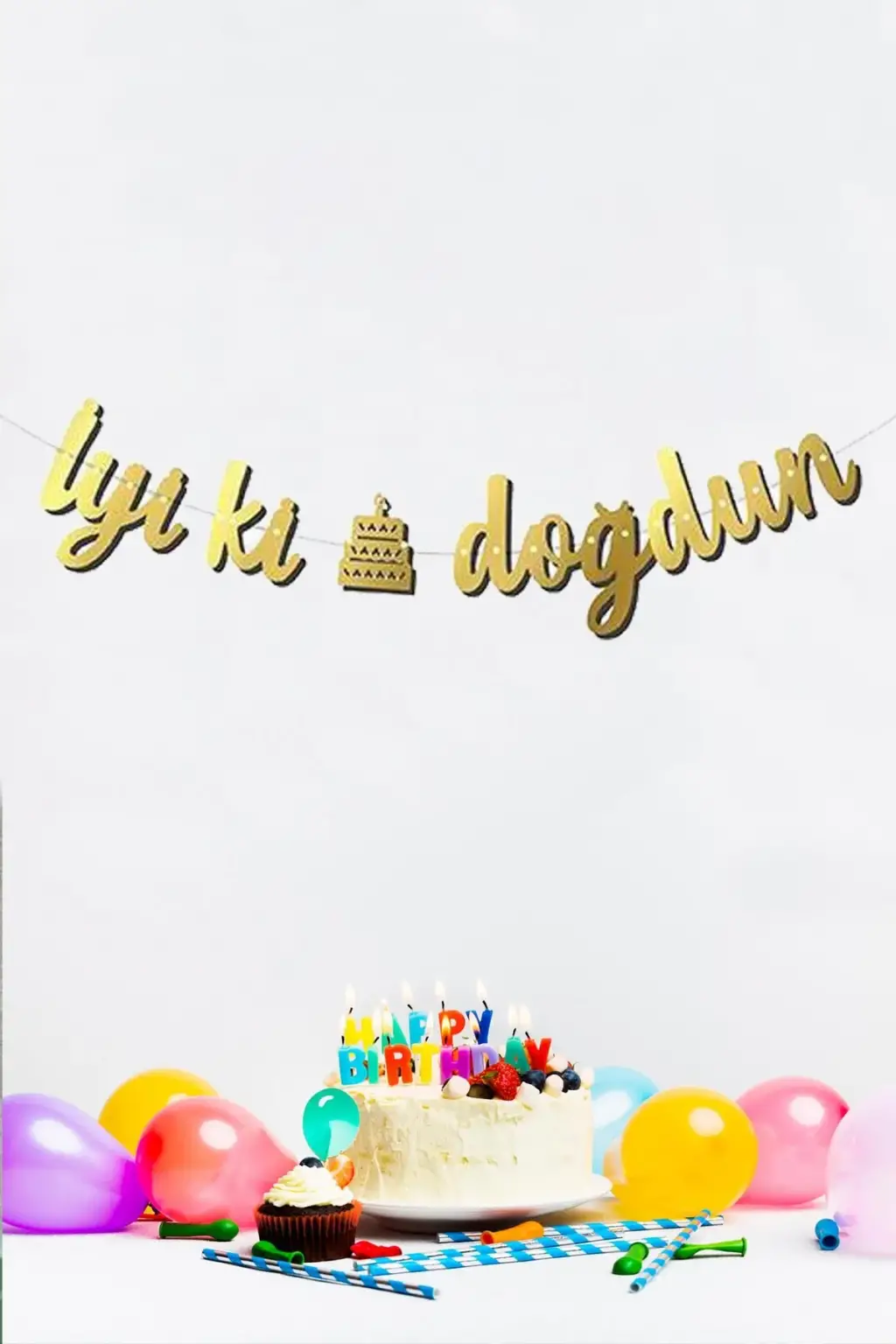 İyiki Doğdun Yazılı Kaligrafi Banner Yazısı Gold Renk Doğum Günü Partisi 135 cm