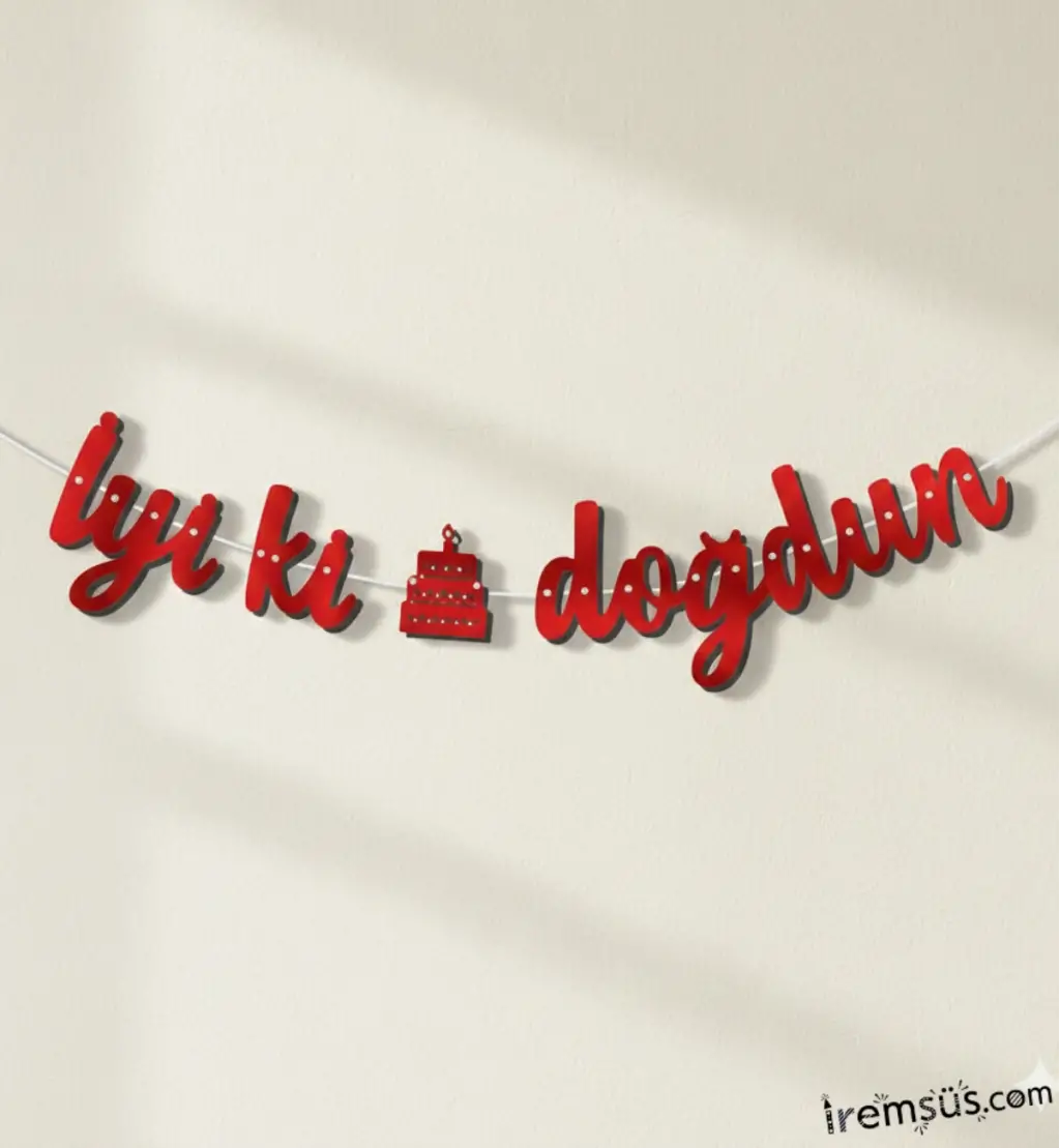 İyiki Doğdun Yazılı Kaligrafi Banner Yazısı Kırmızı Renk Doğum Günü Partisi 135 cm
