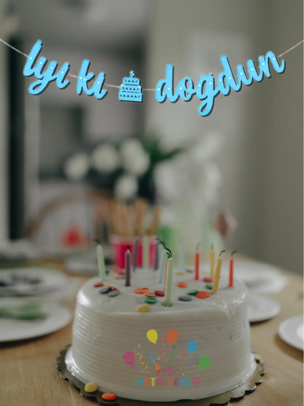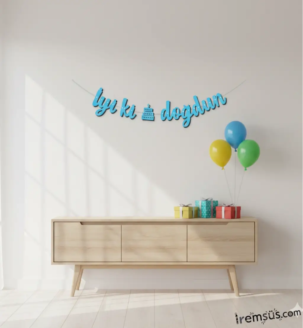 İyiki Doğdun Yazılı Kaligrafi Banner Yazısı Mavi Renk Doğum Günü Partisi 135 cm