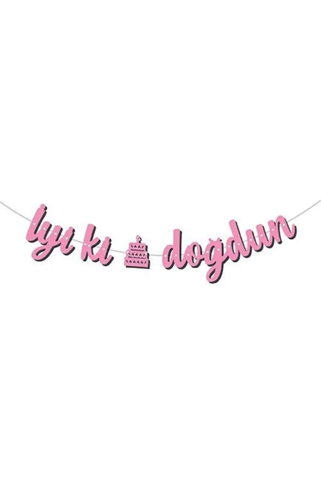 İyiki Doğdun Yazılı Kaligrafi Banner Yazısı Pembe Renk Dpğum Günü Partisi 135 cm
