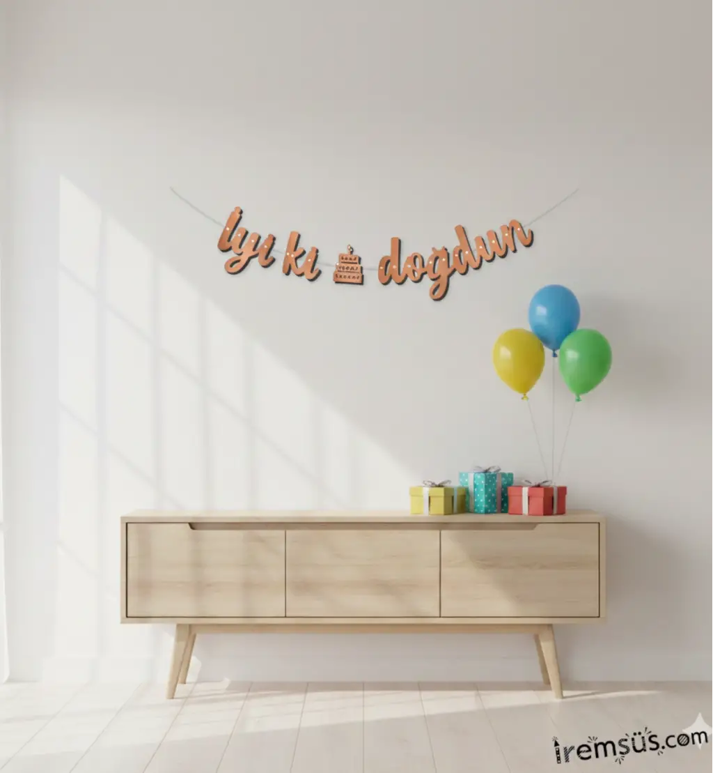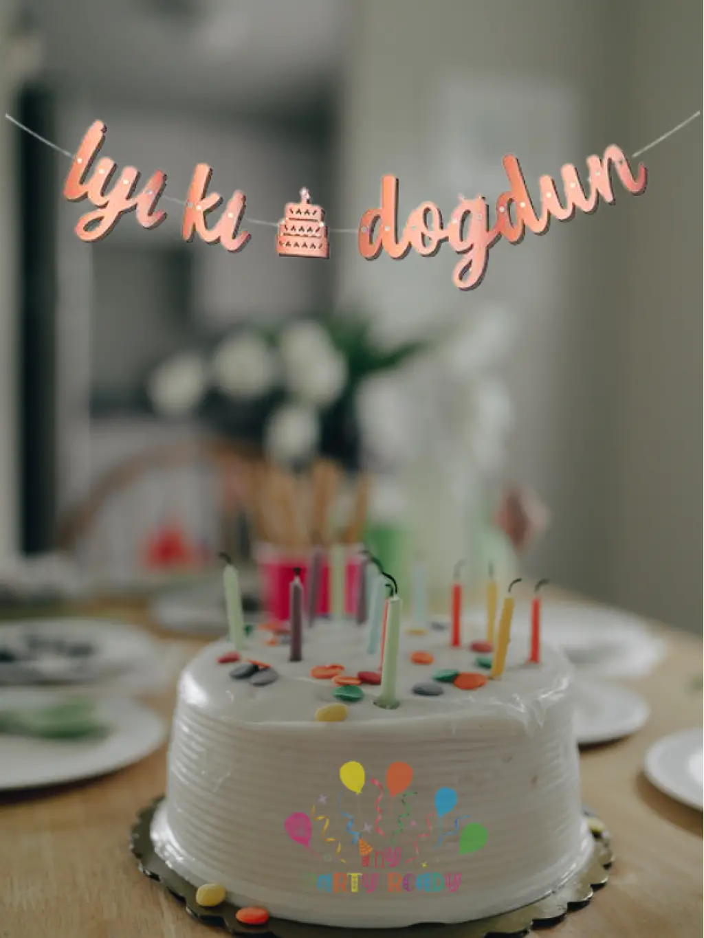 İyiki Doğdun Yazılı Kaligrafi Banner Yazısı Rose Gold Renk Doğum Günü Partisi 135 cm