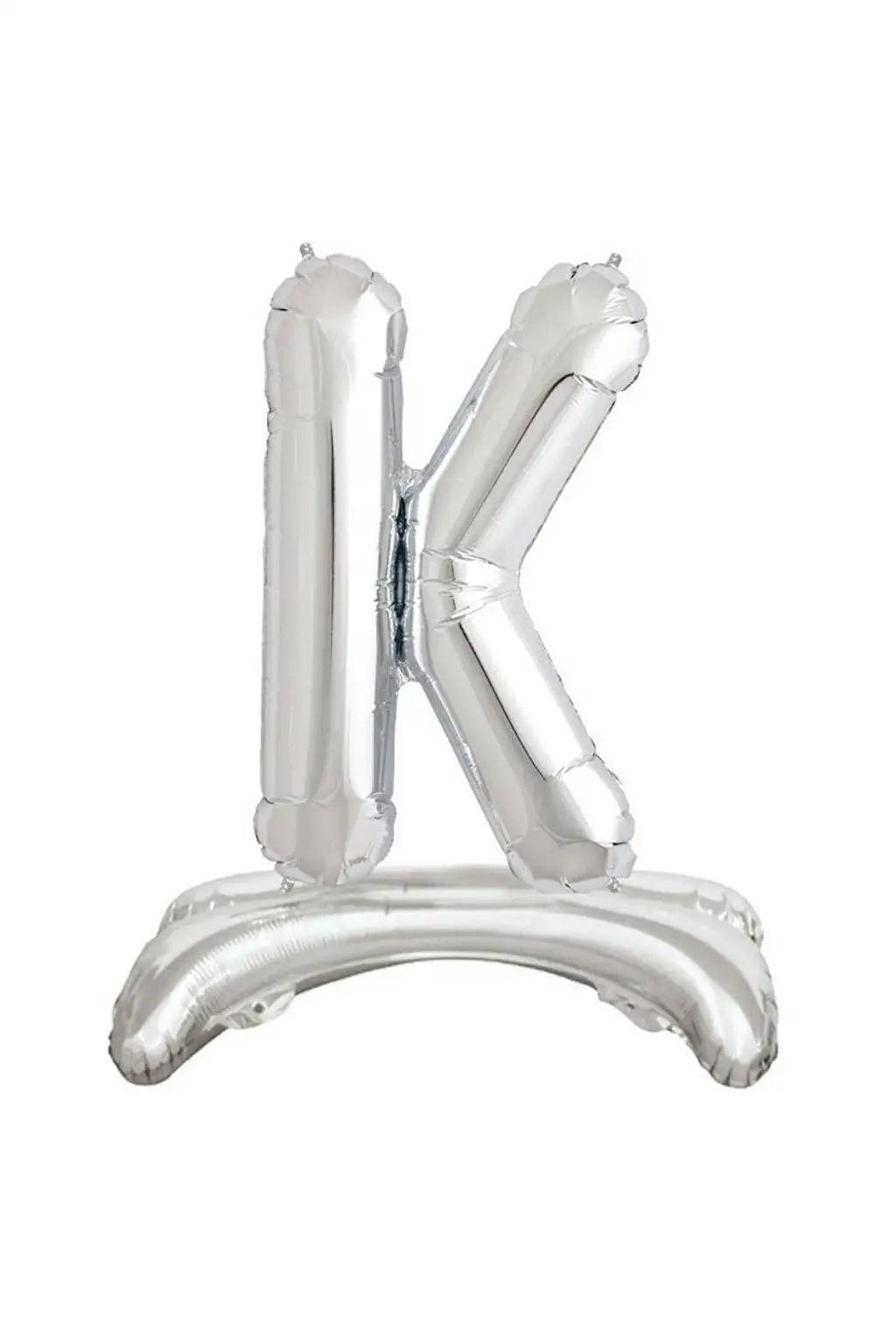 K Harfi Ayaklı Folyo Balon Gümüş Renk 32"
