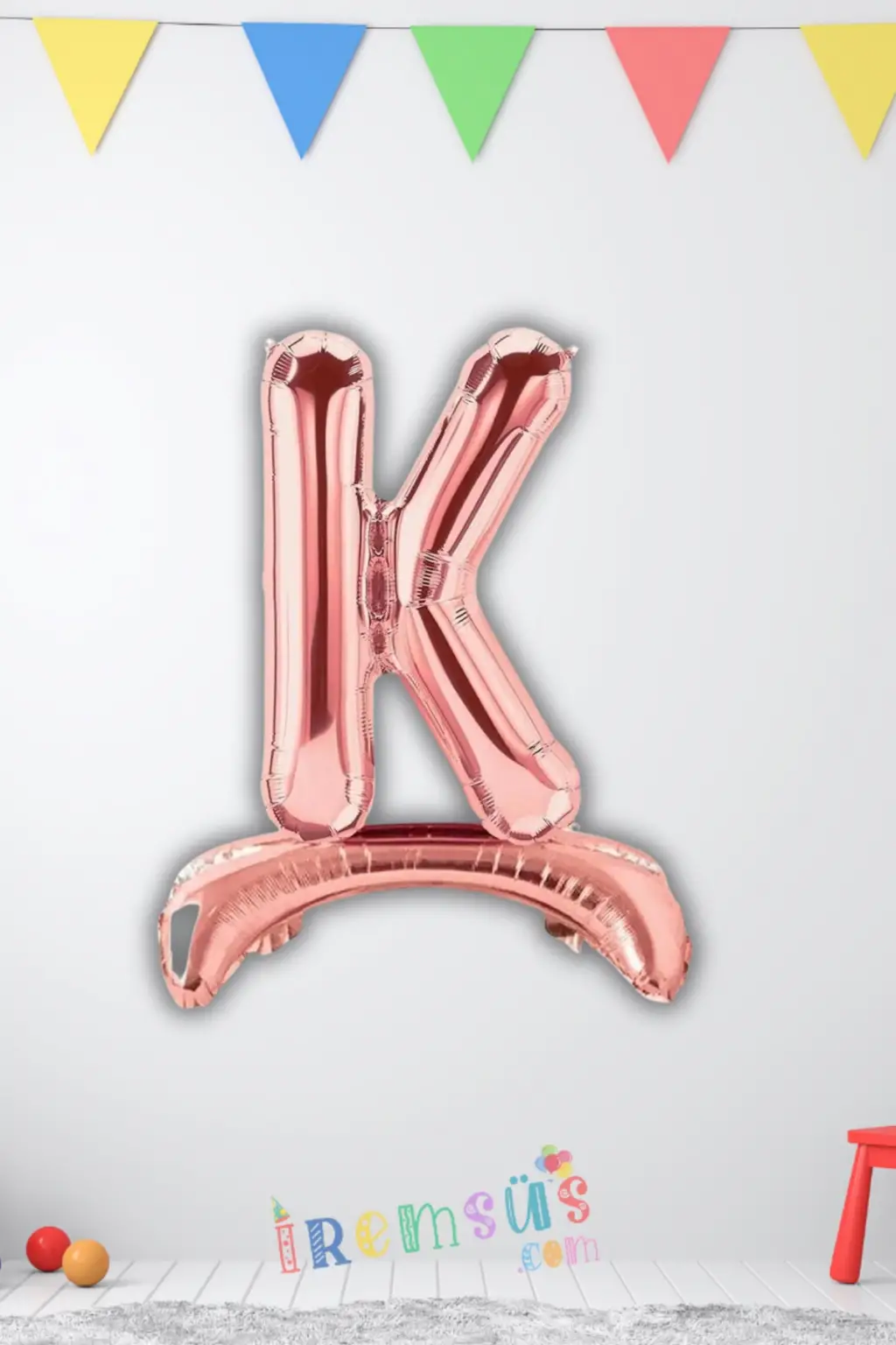 K Harfi Ayaklı Folyo Balon Rose Gold Renk 32"