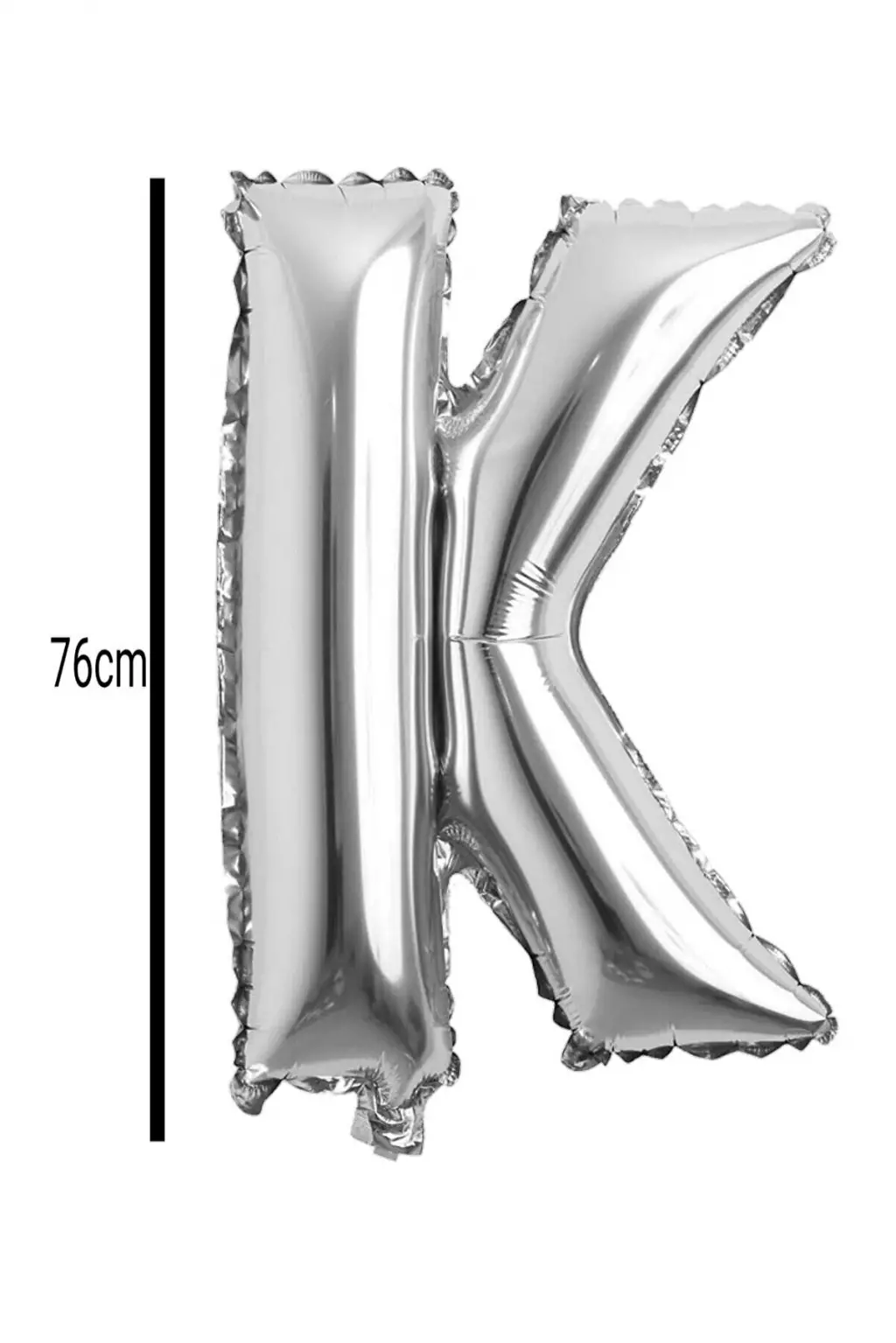 K Harfi Doğum Günü Gümüş Renk Folyo Helyum Balon 34" 76 Cm K Harf Folyo Balon Silver Konsept