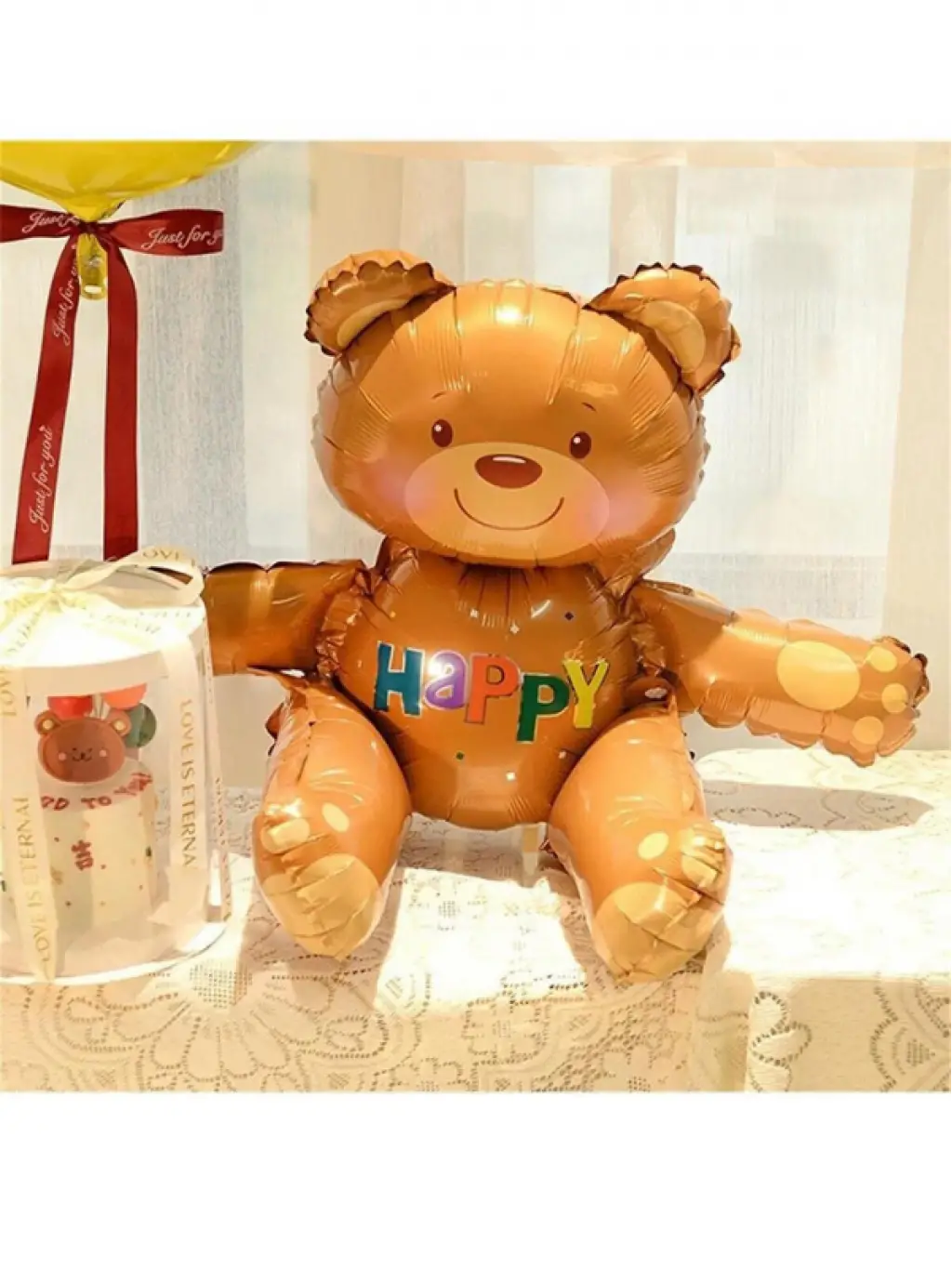 Retro Kalpli Ayıcık Figür Folyo Balon 55 Cm Mat Açık Kahve Renk Doğum Günü Folyo Balon