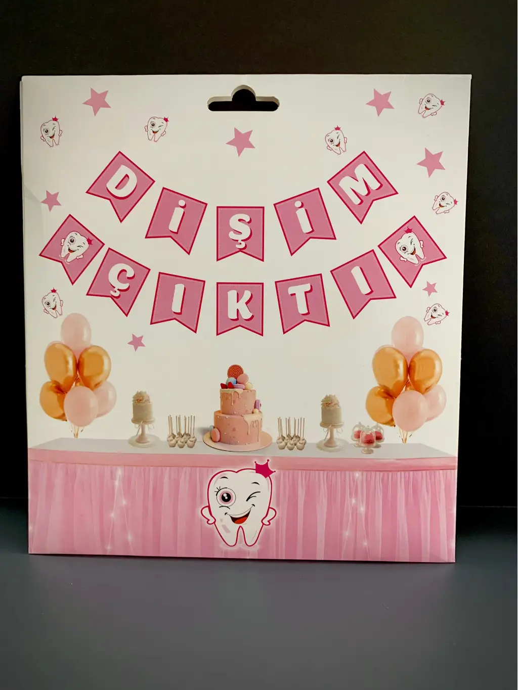 ilk diş pembe dişim çıktı yazılı ipli banner partilerinizde kullanabileceğiniz ,