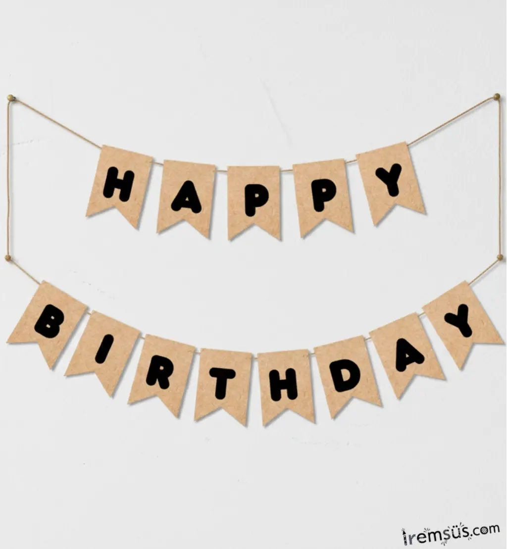 Kraft Renk Siyah Yazılı Happy Birthday Banner Süsleme Kraft Doğum Günü Yazısı