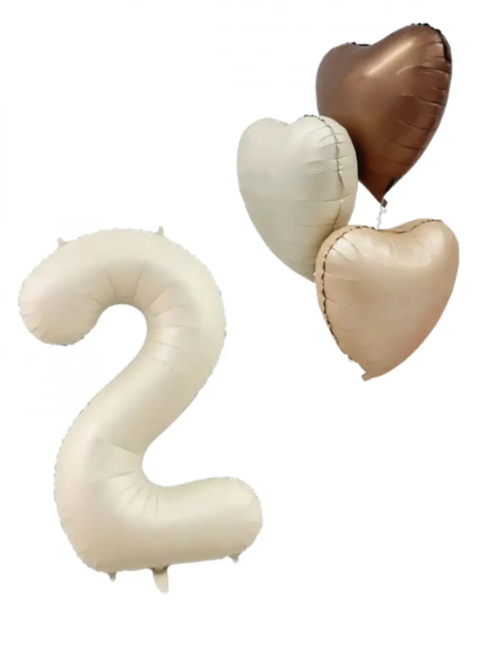 Krem Renk Konsept 2 Yaş Kalp Balonlu Set Retro Renkli 2 Yaş Doğum Günü Folyo Balon Seti