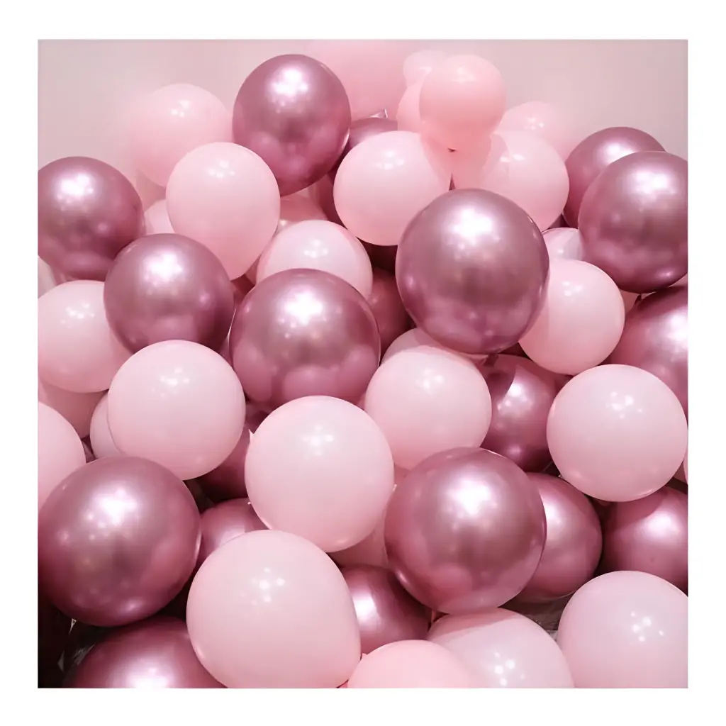 Krom Pembe Balon ve Pastel Pembe Balon Seti 20 Adet Pembe Konsept Balon Süslemesi