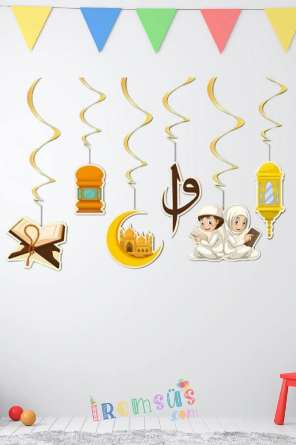 Kuran Okuyorum Konsept Tavan Sarkıt Süs 6 lı Kuran Partisi Süslemesi