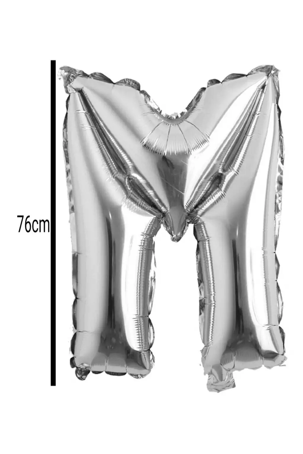 • Paket İçeriği : M Harfi /34''-76 CM EBAT Gümüş Silver Renk Folyo Harf Balon.