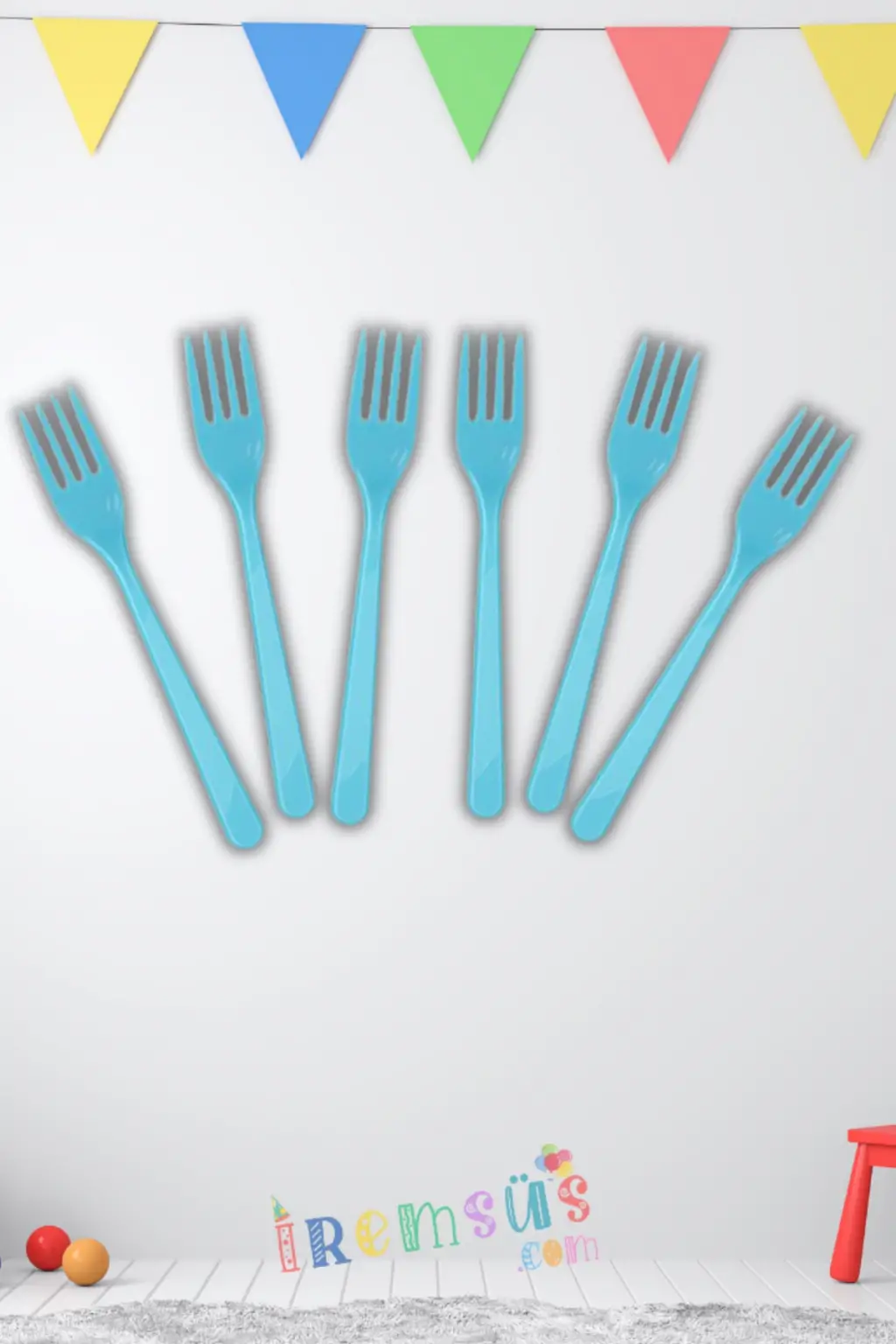 Mavi Renk Plastik Çatal 24 Adet Mavi Konsept Kullan At Kaliteli Çatal