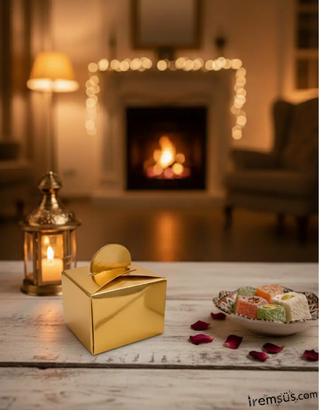 Metalize Parlak Gold Renk Dağıtmalık Lokumluk Karton Kare Kutu 25li Ramazan Bayramı Dağıtmalık Süs