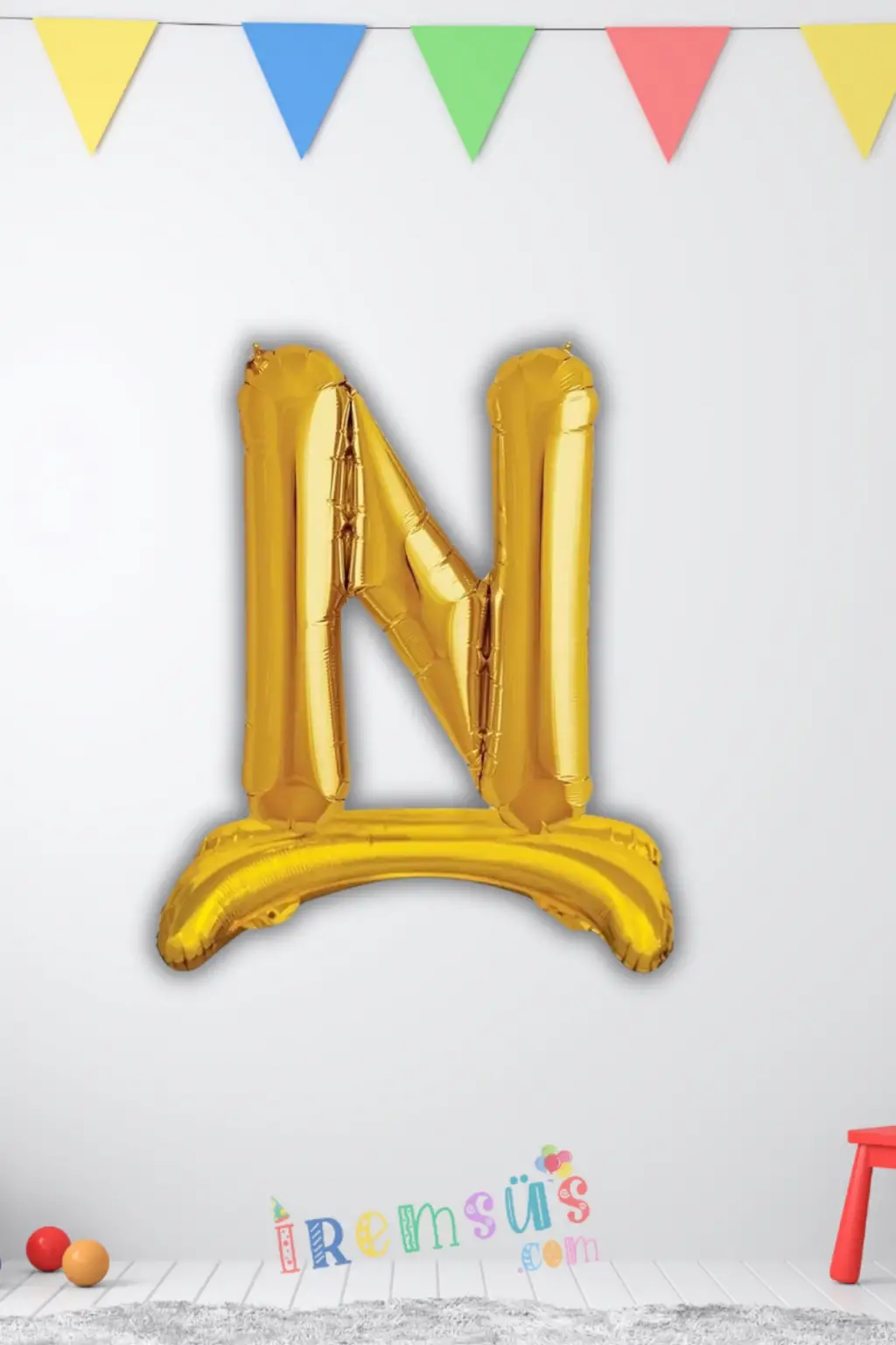 N Harfi Ayaklı Folyo Balon Gold Renk 32"