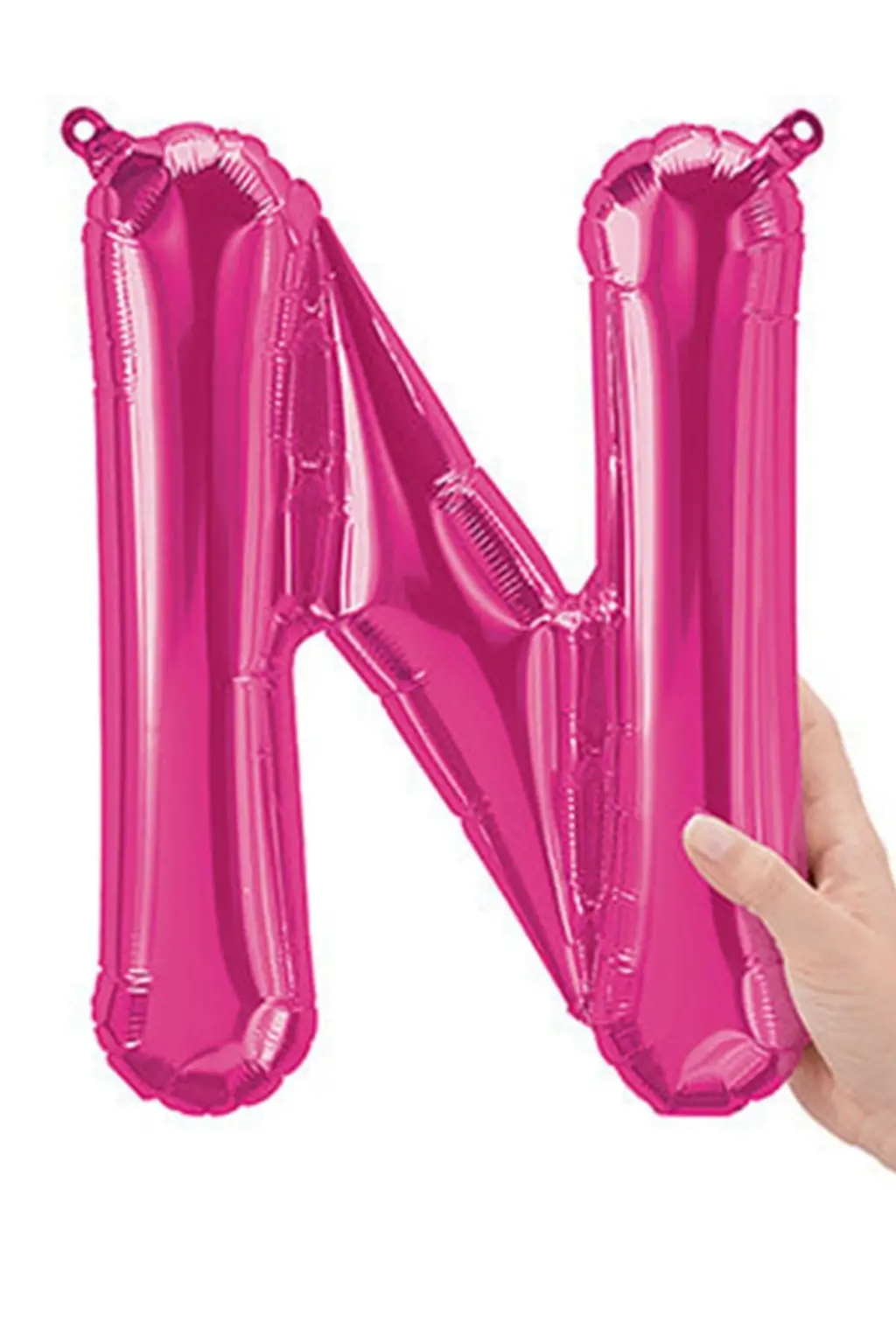 N Harfi Doğum Günü Pembe Renk Folyo Balon 16" 36 Cm N Harf Folyo Balon Pembe Konsept