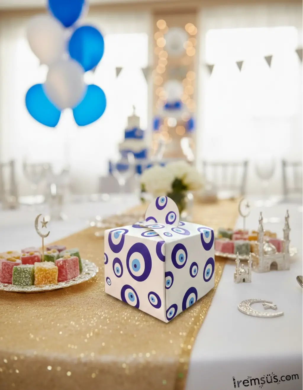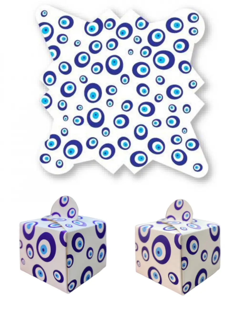 Nazar Boncuklu Lokumluk Karton Kutu Dağıtmalık 25li