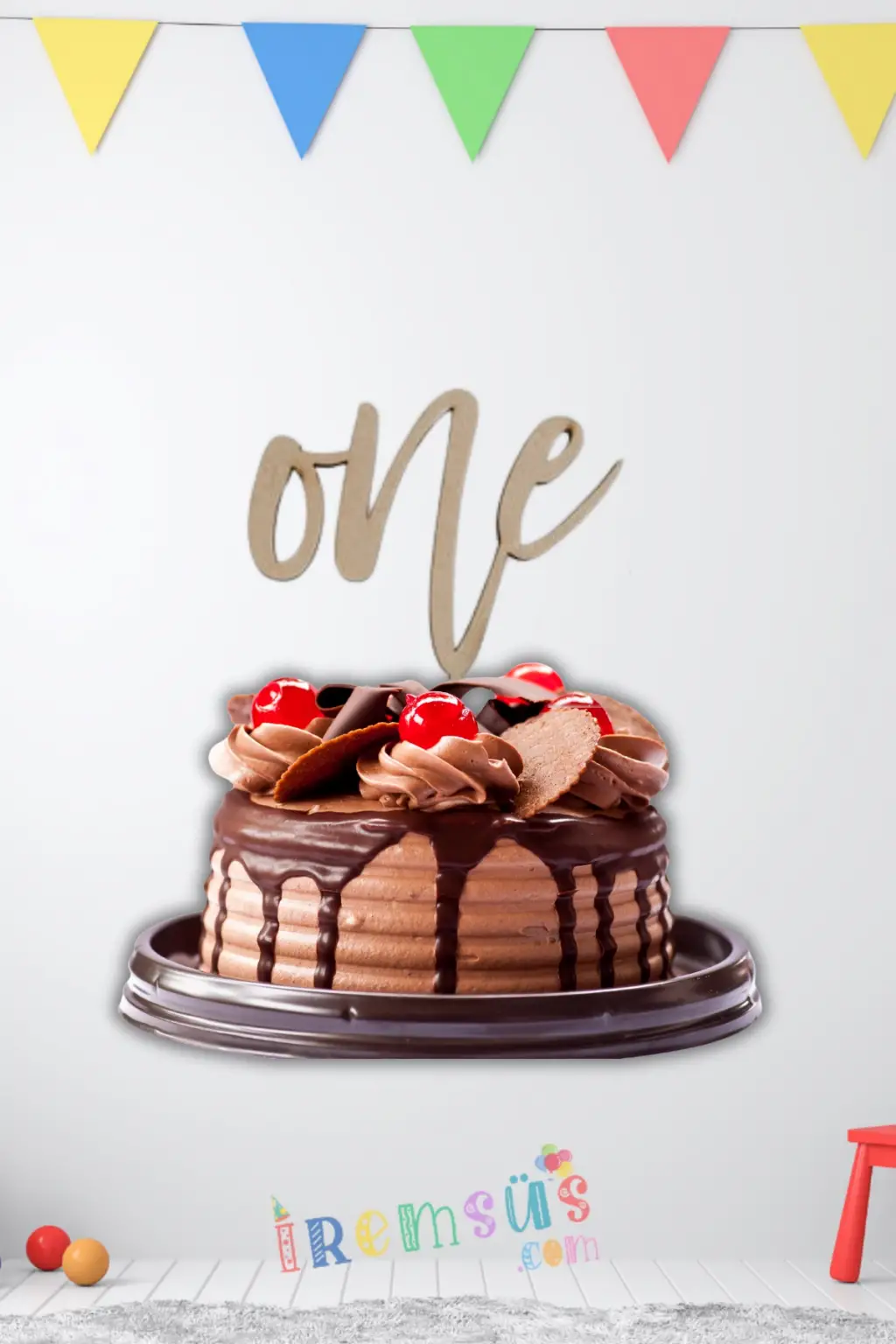 One Yazılı Ahşap Pasta Üstü Süsü 1 Yaş Pasta Süslemesi