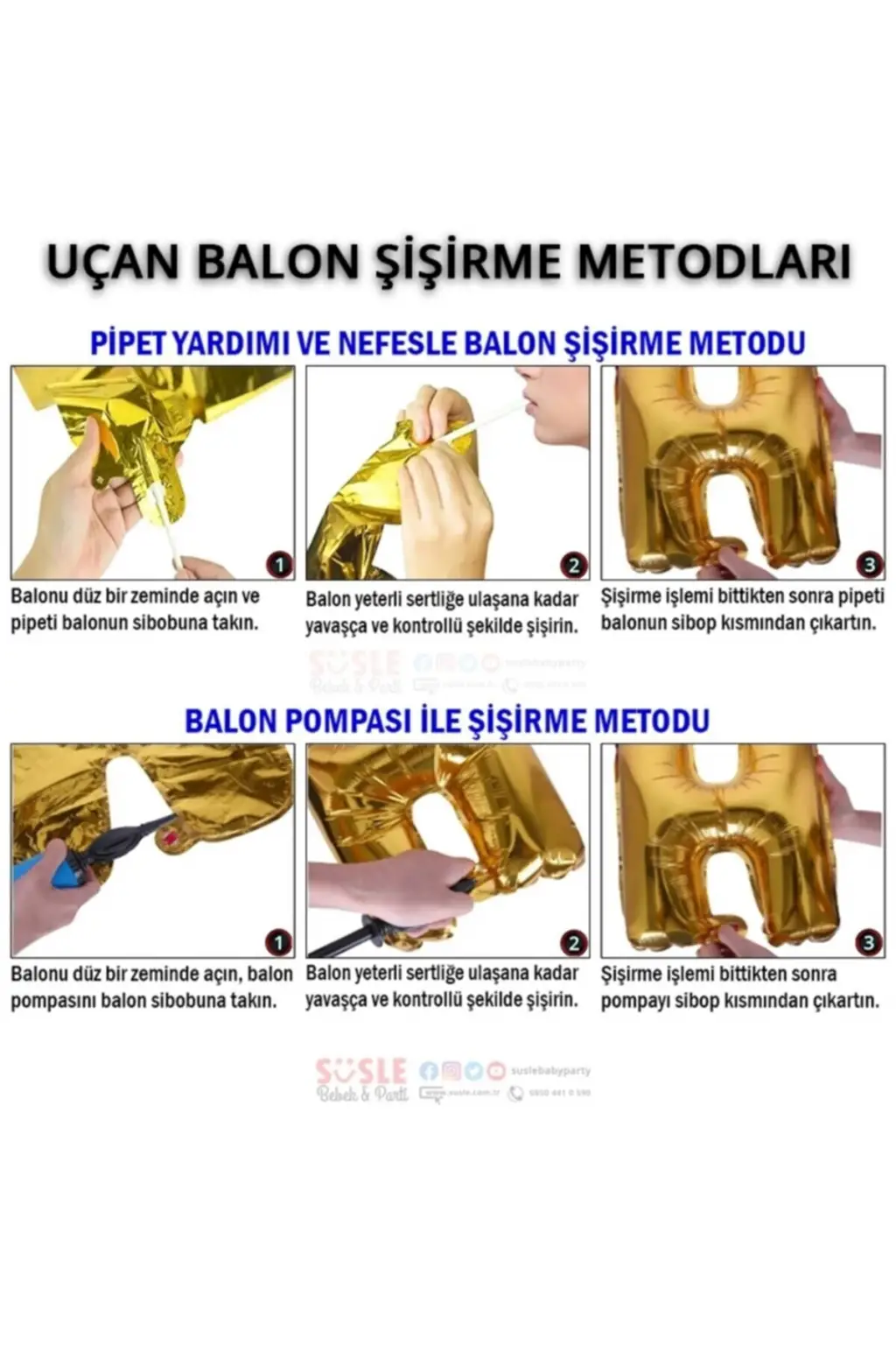 Folyo balonlar şişirilmeden paket içinde inik halde gönderilir. -