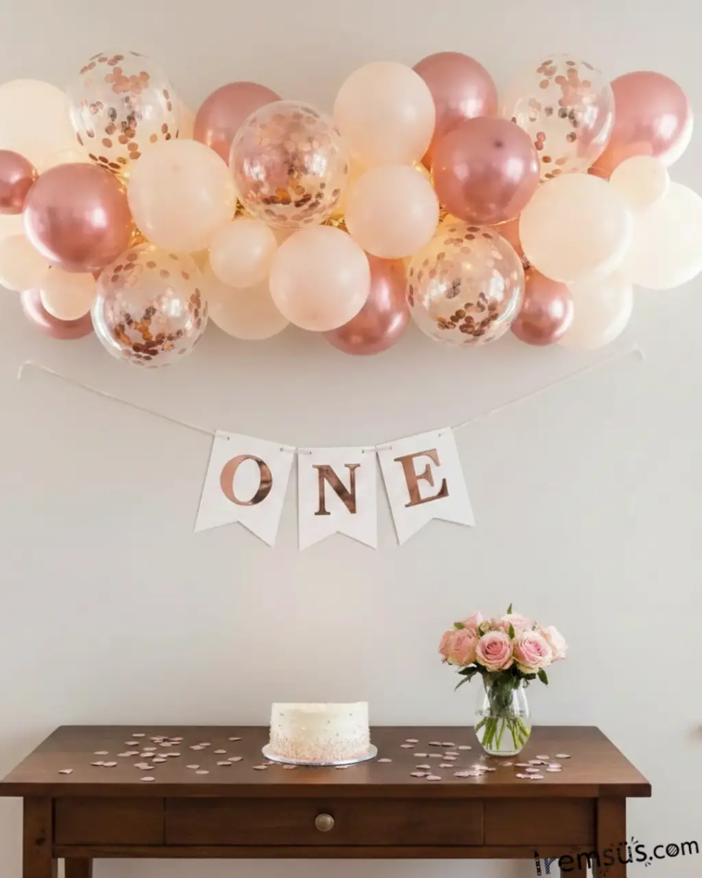 One Yazılı Beyaz Renk Rose Yaldızşı Banner Süsleme 1 Yaş Doğum Günü Süslemesi
