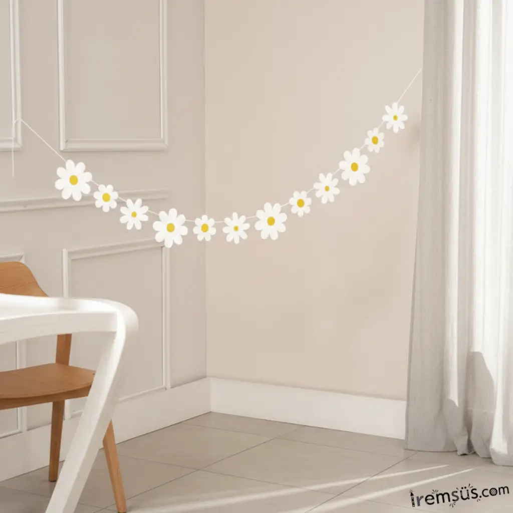 Papatya Konsept Doğum Günü Partisi Şerit Süsleme 3 mt Papatya Şeklinde İp Süsleme
