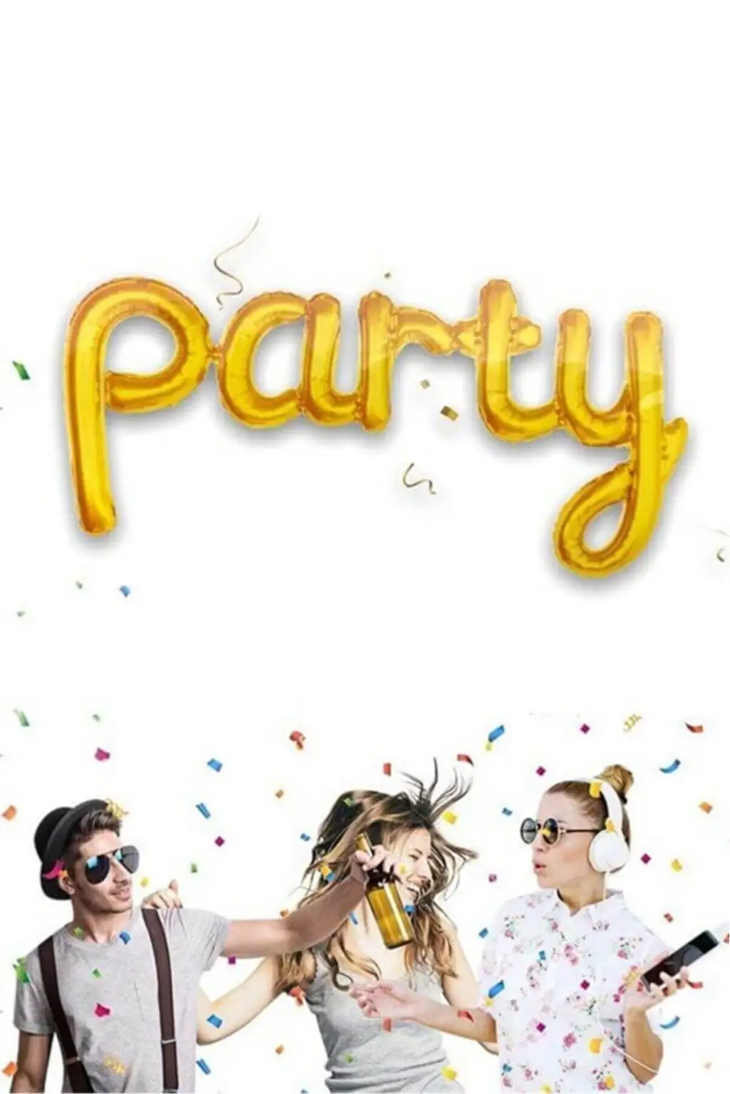 Party Yazılı Birleşik Gold Renk Folyo Balon 100cm Parti Balonu Süslemesi