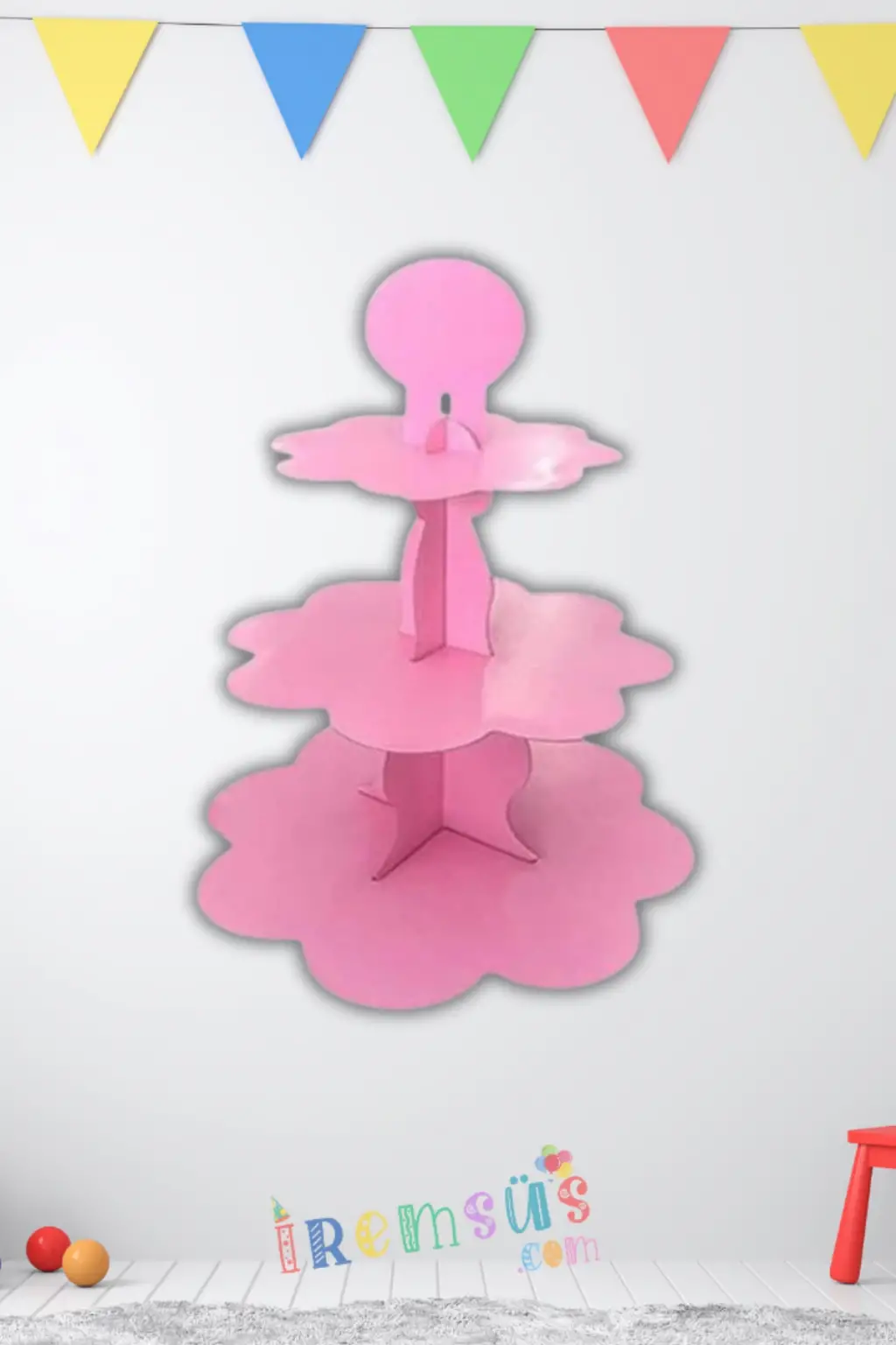 Pembe Konsept Parti 3 Katlı Cupcake Standı Pembe Renk Süsleme Kek Standı