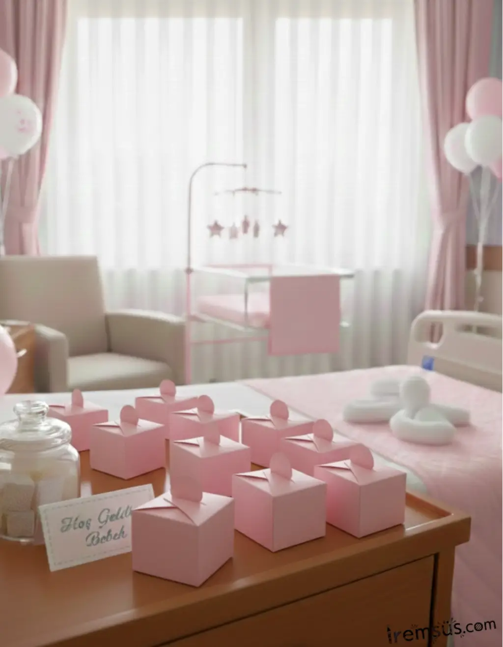 Hoşgeldin Bebeğim Pembe Renk 6 lı Tavan Sarkıt Süs Yeni Doğum Kız Bebek Süslemesi