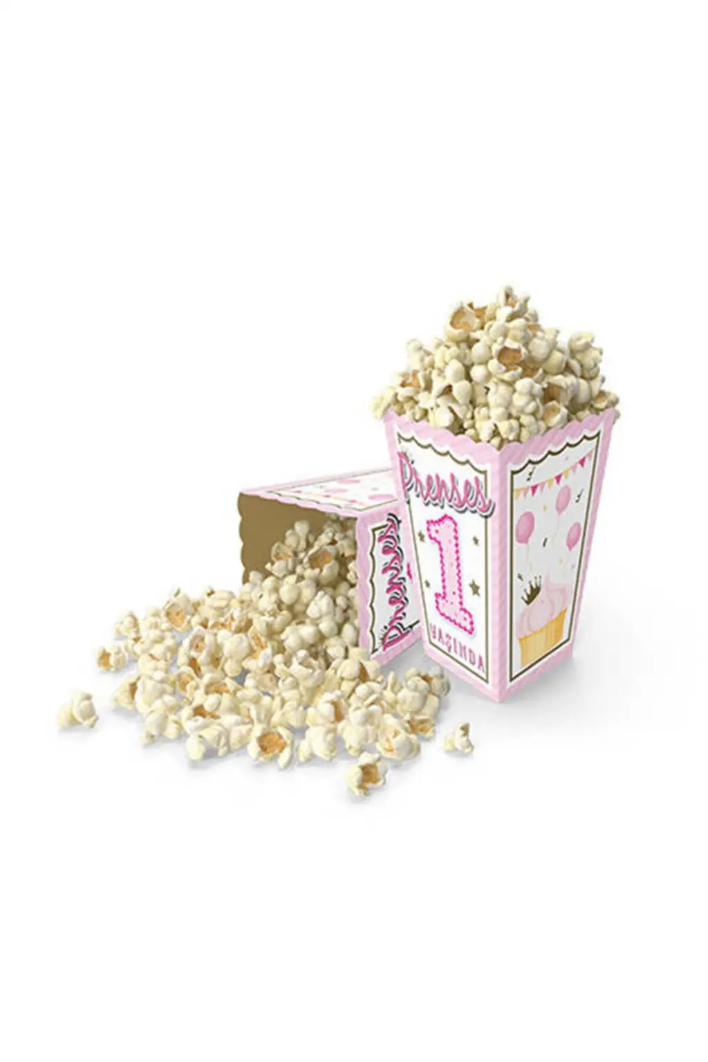 Prenses 1 Yaşında Baskılı Pembe Renk Mısır Kutusu 8 li Kız Bebek 1 Yaş Doğum Günü Süsü