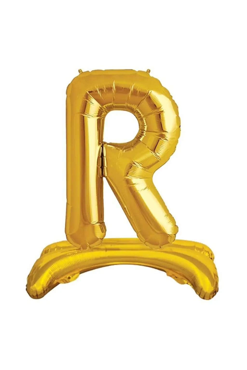 R Harfi Ayaklı Folyo Balon Gold Renk 32"