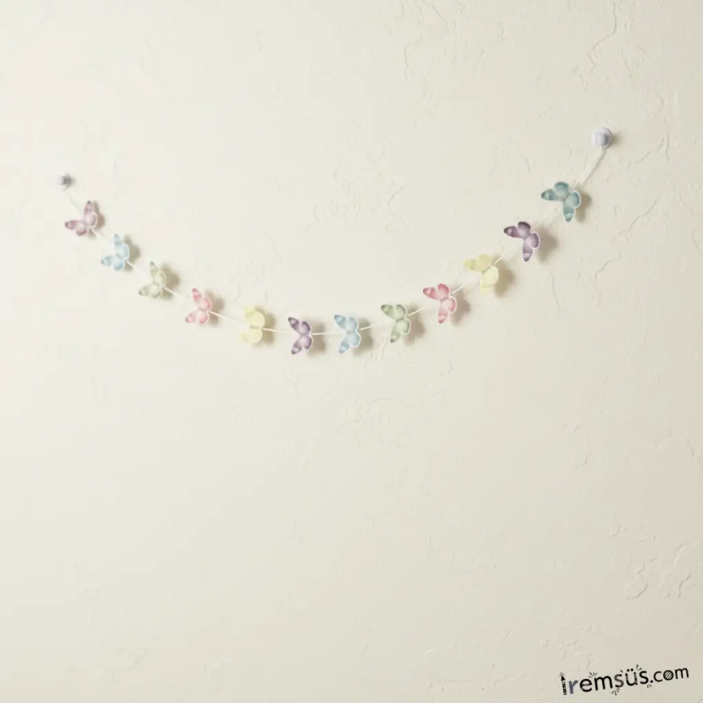 Rengarenk Yana Açılır Kelebek Şerit Süsleme 3mt Kelebek Konsept Parti Süsleme Makaron Renkler