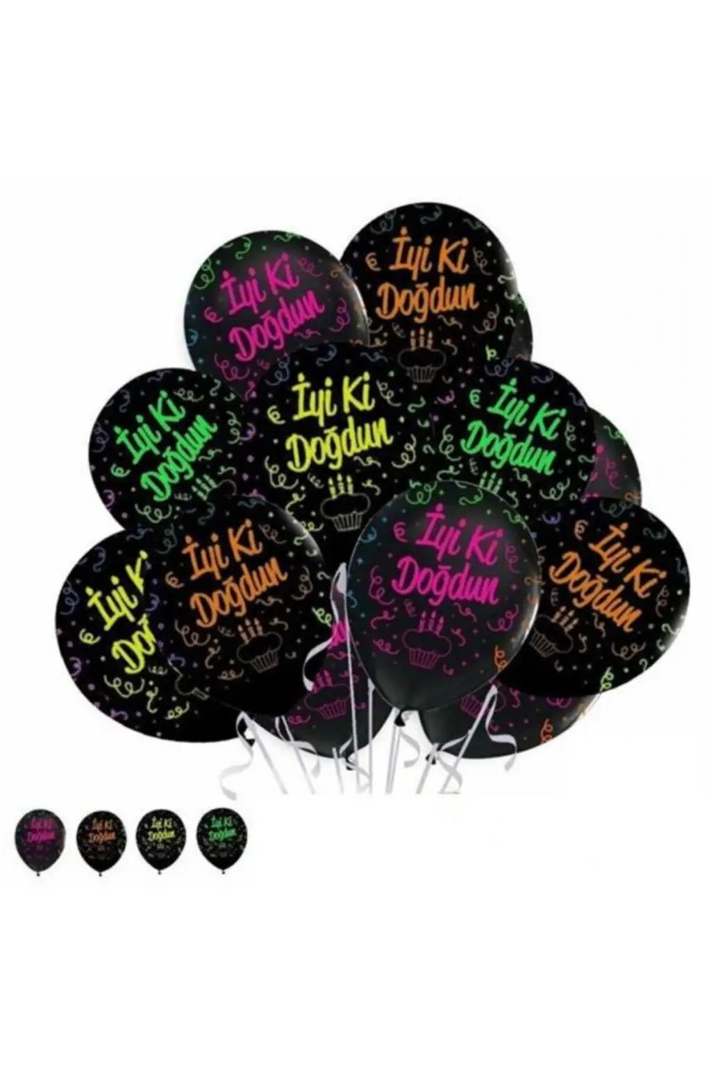Renkli İyiki Doğdun Yazılı Siyah Balon 10 adet