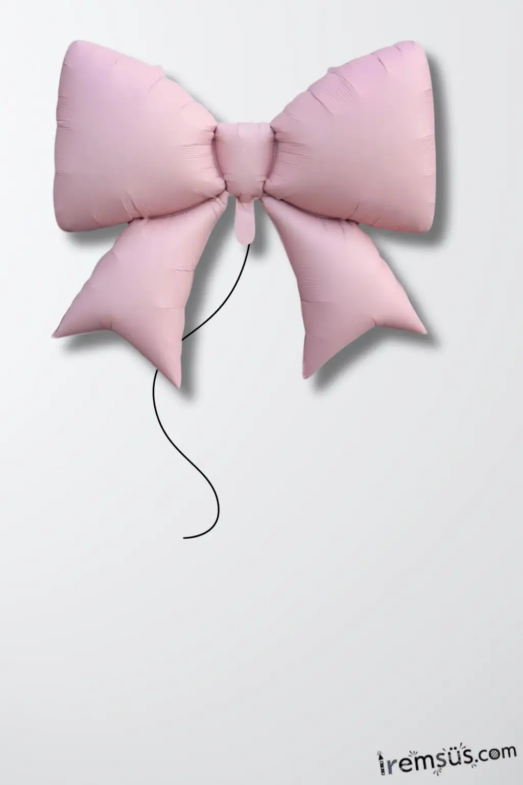 Retro Düz Pembe Renk Kurdele Fiyonk Figür Folyo Helyum Balon 98 cm Mat Pembe Renk Süsleme Balonu