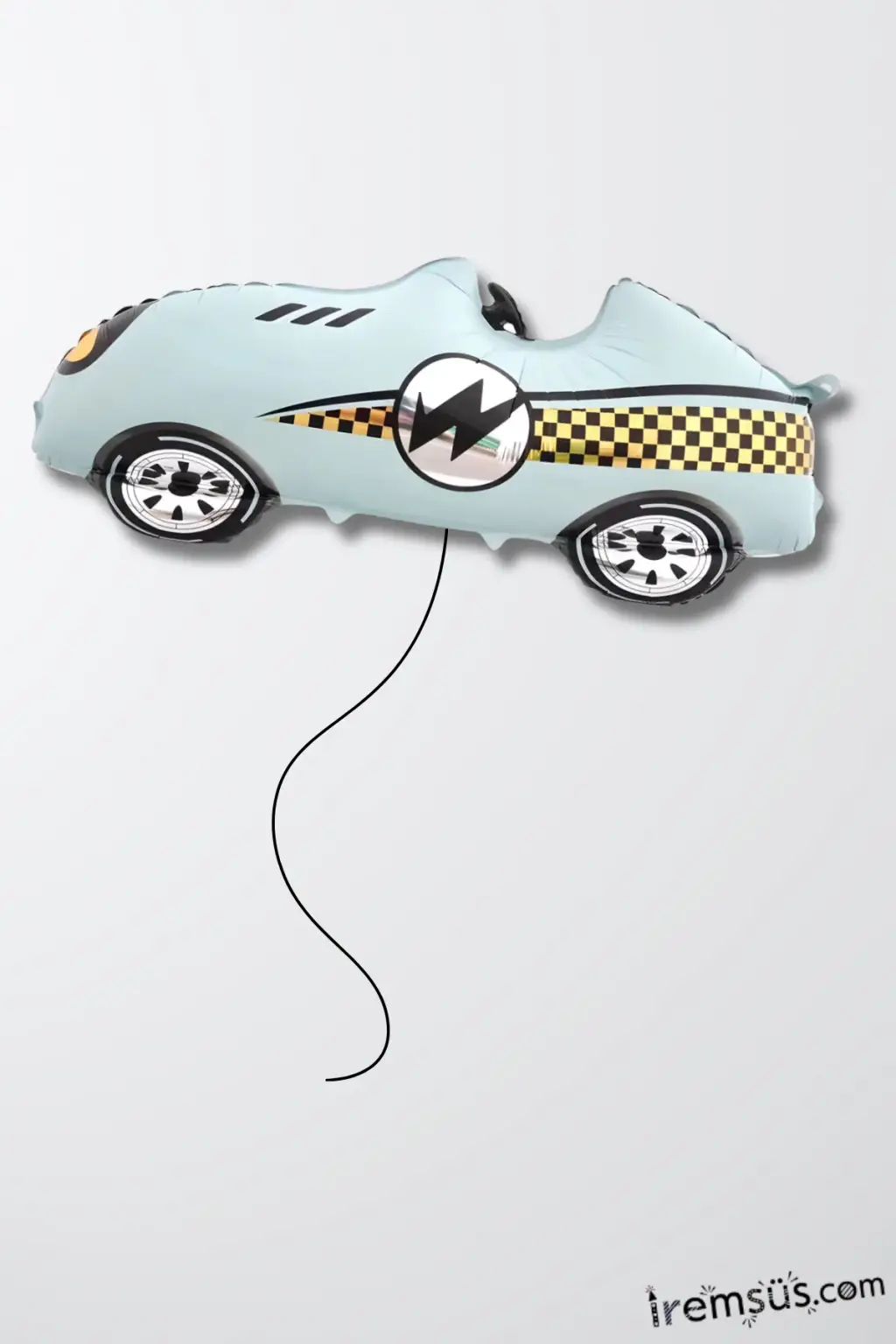 Retro Mavi Yarış Arabası Folyo Helyum Balon 110-49 Cm Retro Araba Konsept Parti Süsleme Balonu