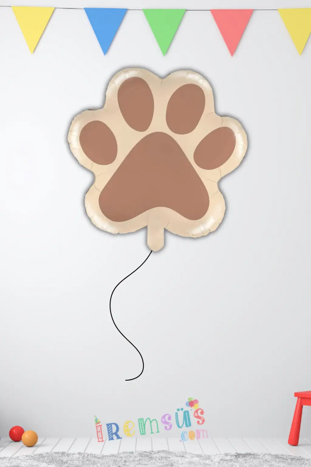 Retro Renk Köpek Patisi Figür Folyo Helyum Balon 45 cm Bej Renk Pati Folyo Balon