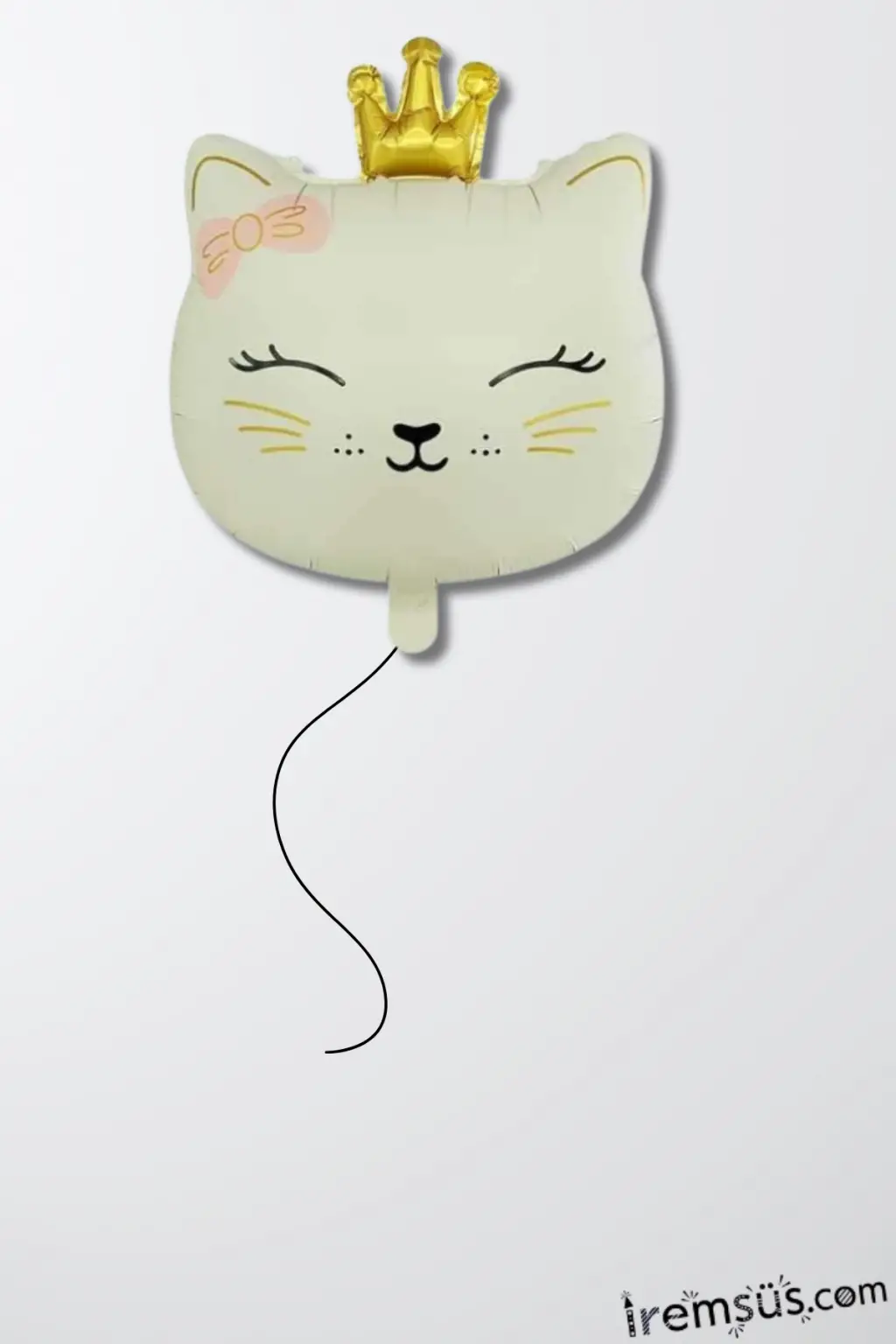 Bej Renk Kedi Figür Folyo Helyum Balon 55 Cm Kedi Şekilli Parti Balonu