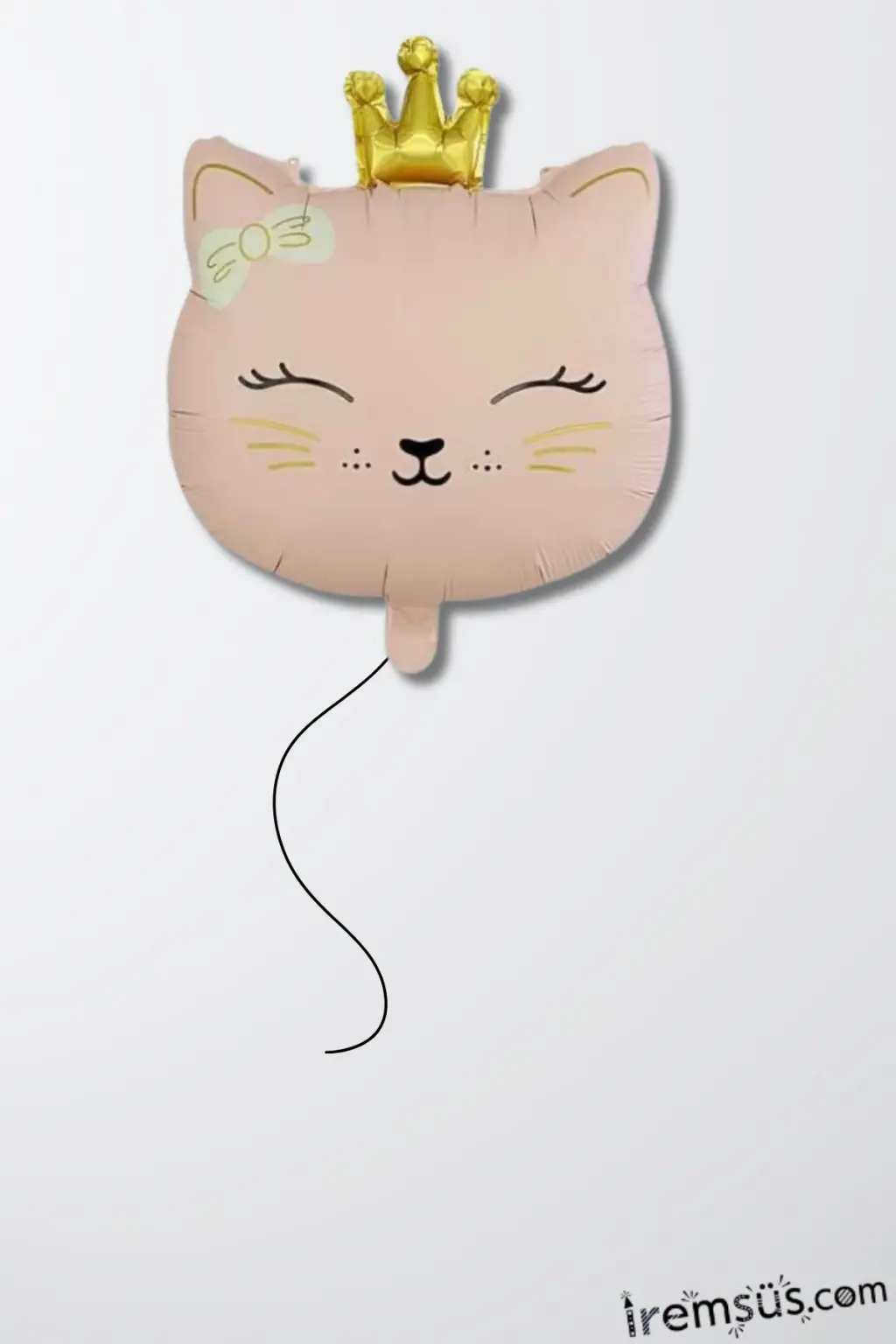 Bej Renk Kedi Figür Folyo Helyum Balon 55 Cm Kedi Şekilli Parti Balonu