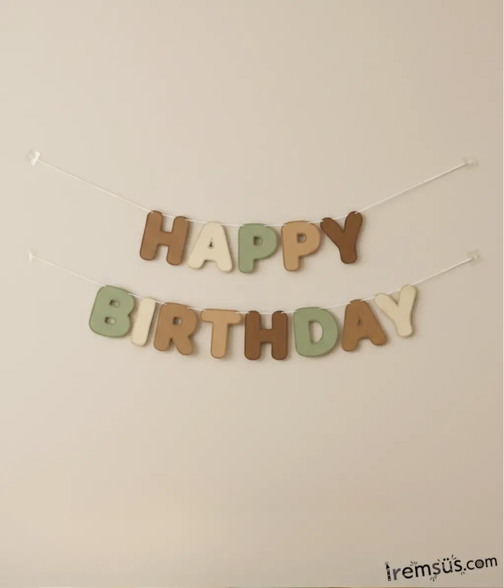 Kraft Renk Beyaz Yazılı Happy Birthday Banner Süsleme Kraft Doğum Günü Yazısı