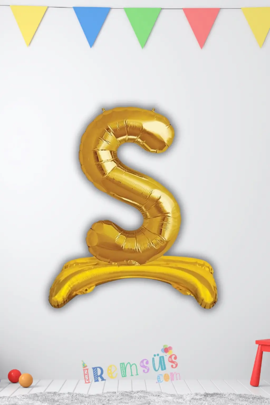 S Harfi Ayaklı Folyo Balon Gold Renk 32"