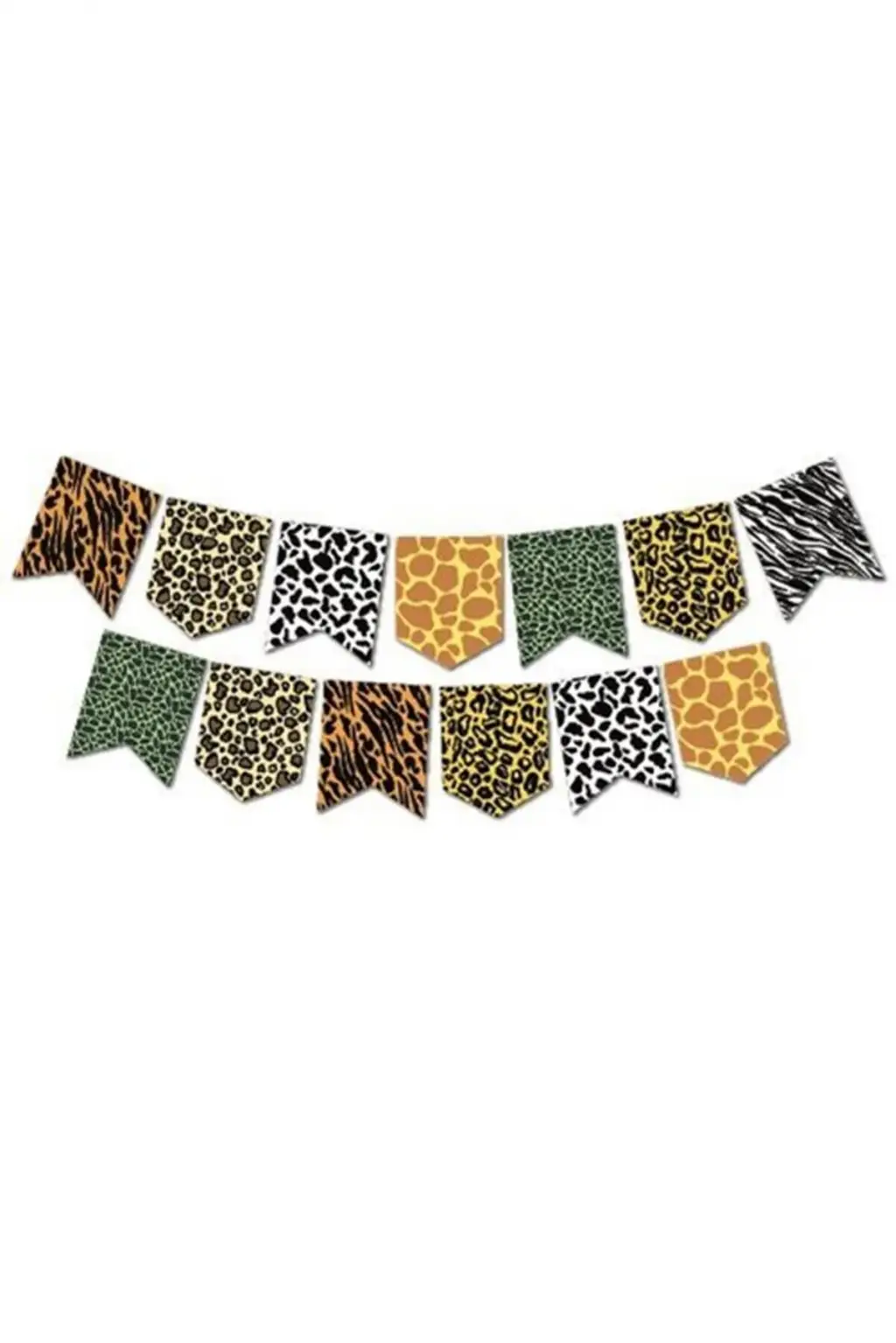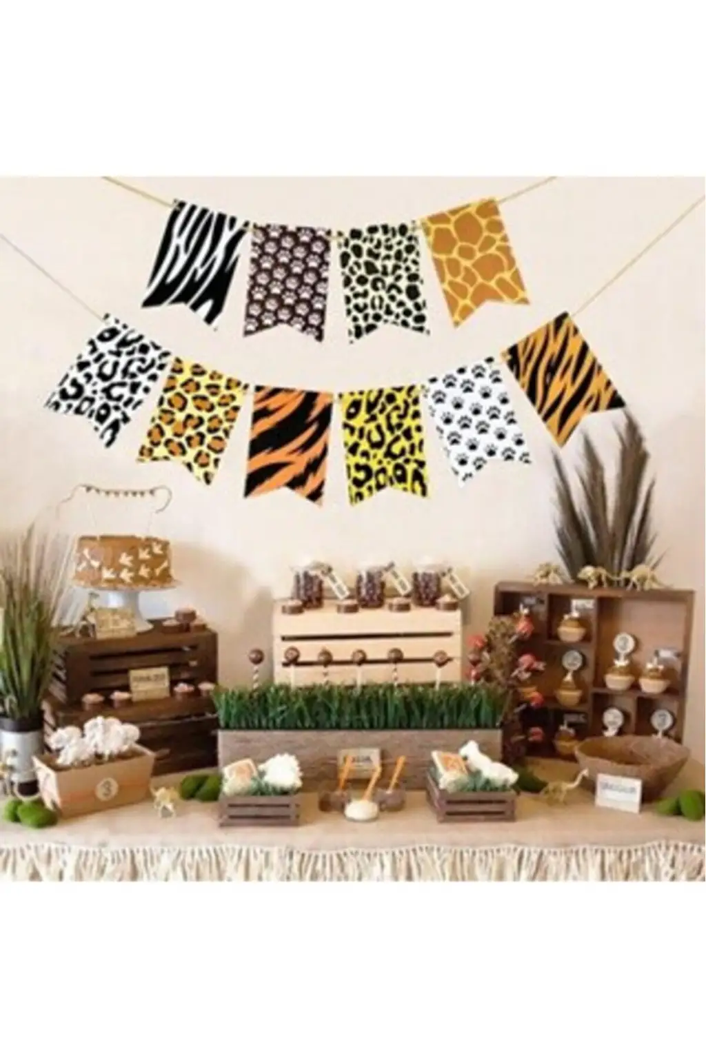 Safari Konsept Doğum Günü Partisi Safari Desenli Zikzak Banner Süsleme 190 cm