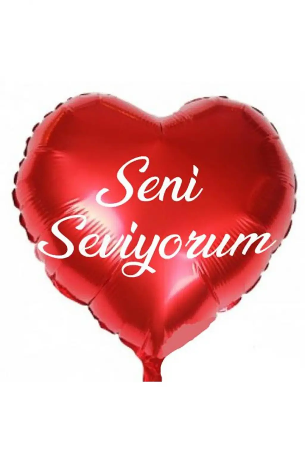 Seni Seviyorum Baskılı Kırmızı Renk Folyo Helyum Kalp Balon 18'' 45 cm Sevgililer Günü Süslemesi