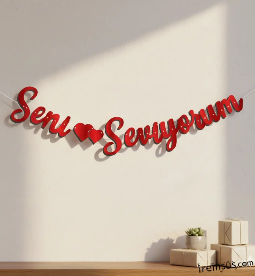 Paket içerisinde 1 set ''Kaligrafi Banner Kırmızı Seni Seviyorum'' bulunmaktadır.