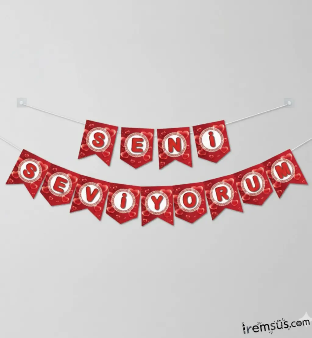 Seni Seviyorum Yazılı Kaligrafi Banner Yazısı Kırmızı Renk Sevgili Sürprizi